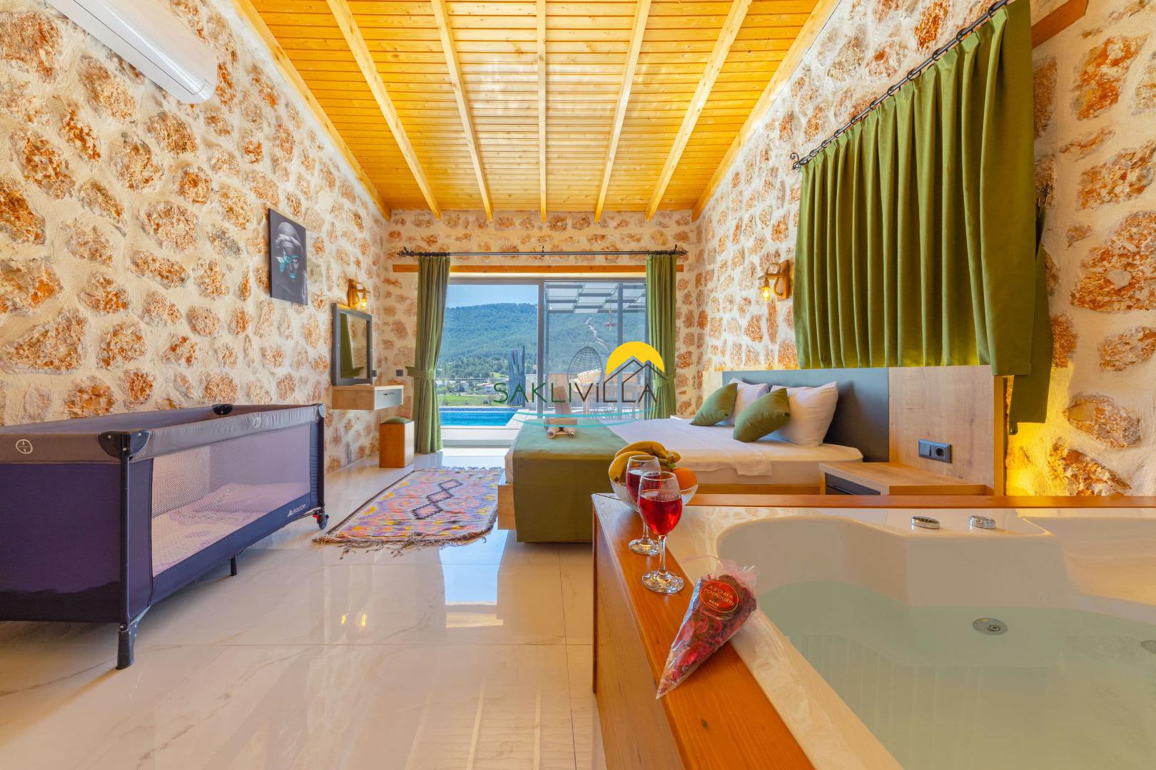 Villamız iki yatak odalıdır. Birinci yatak odasının içerisinde çift kişilik yatak, klima, jakuzi ve banyo bulunmaktadır. İkinci yatak odasında iki tek kişilik yatak, banyo ve klima yer almaktadır. Salon içerisinde mutfak, oturma grubu, televizyon ve klima bulunmaktadır.