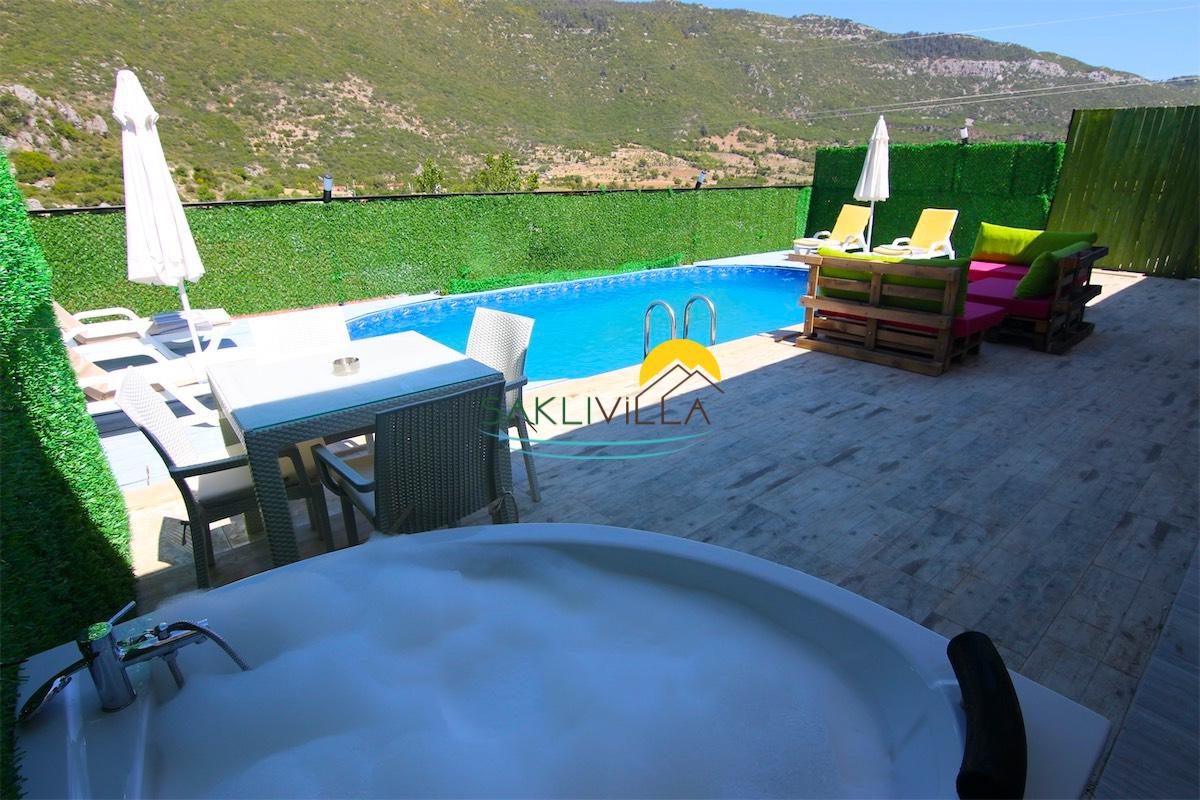 Villa Çimen'de bahçede havuz başı bahçe jakuzisi bulunmaktadır.