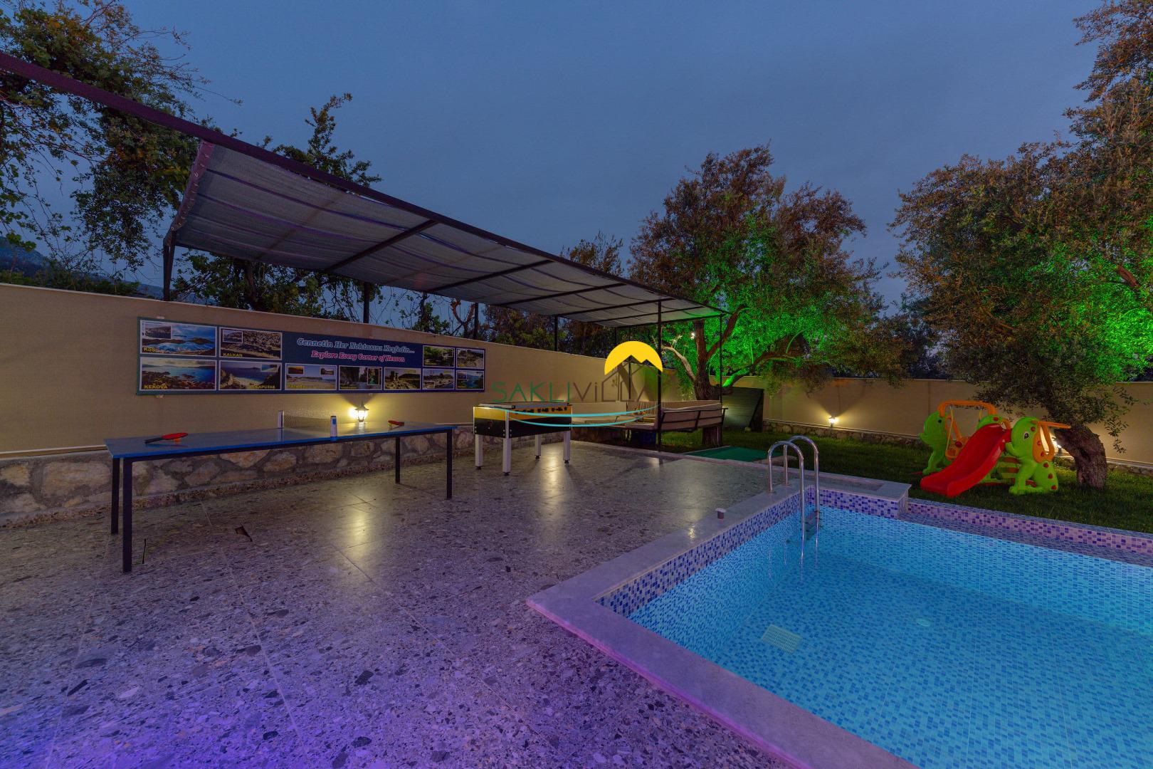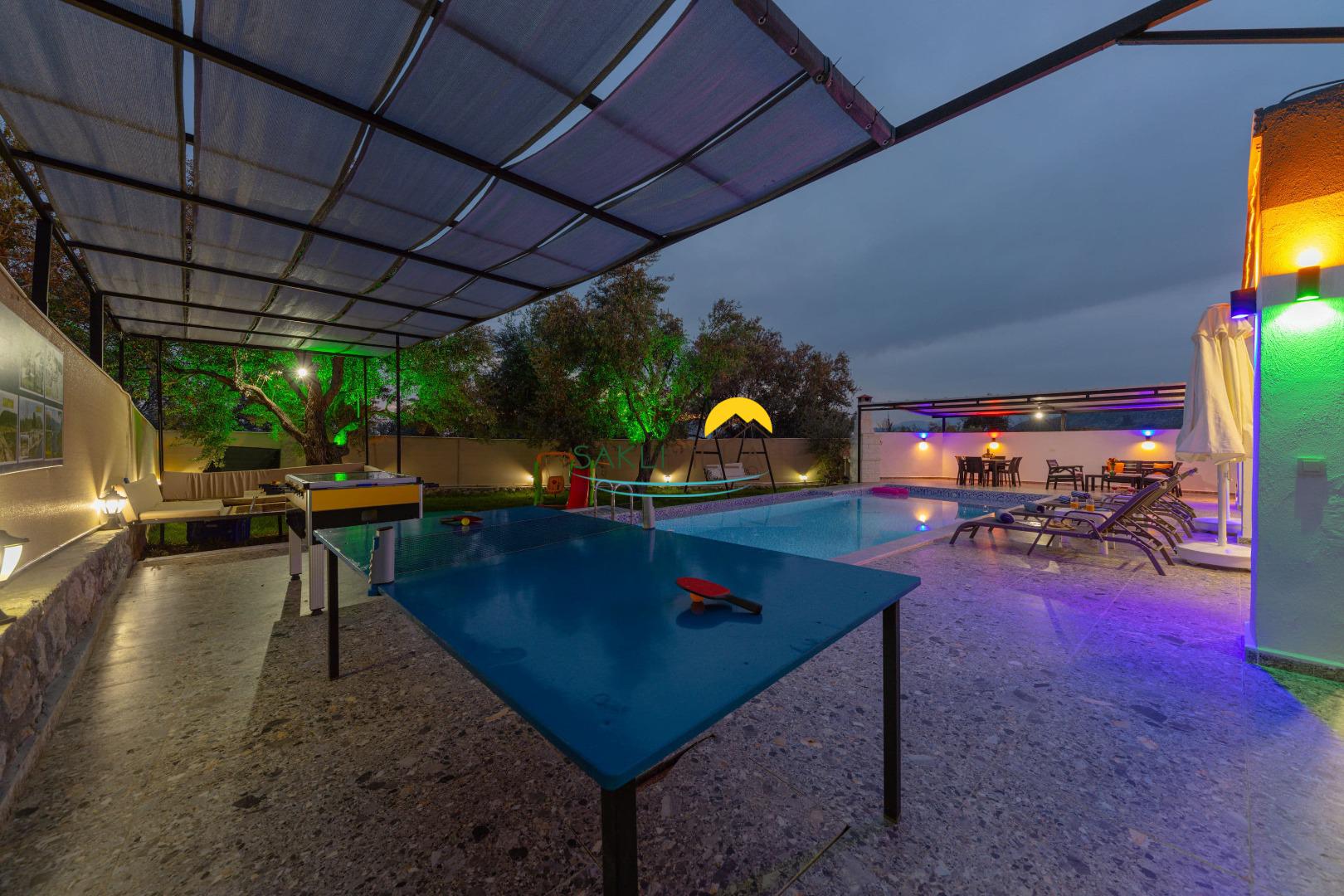 Keyifli sohbetlerinizi yapabileceğiniz bir oturma köşesi, eğlenceli dakikalarınıza eşlik edecek masa tenisi ve langırt bulunmaktadır. Küçük misafirlerimizin de eğlenmesi için bir oyun alanı mevcuttur.