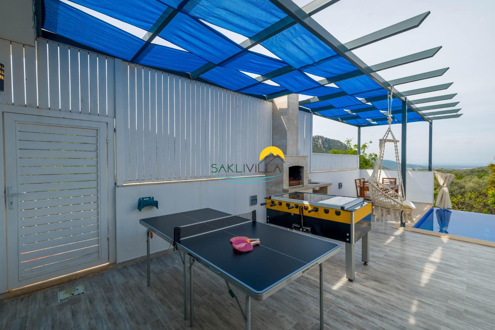 Villa Esin'in en dikkat çekici özelliklerinden biri, sunduğu korunaklı havuz alanıdır. Bu özellik, tatilcilerin mahremiyetini ön planda tutarak, aileniz veya arkadaşlarınızla rahatça vakit geçirebileceğiniz bir ortam sunmaktadır. Havuzun etrafında yer alan geniş güneşlenme terası, güneşin tadını çıkarmak isteyen misafirler için mükemmel bir alan yaratmaktadır. Villa, çevresindeki doğal güzelliklerle birleştiğinde, huzurlu bir ortamda dinlenme fırsatı sunmaktadır.