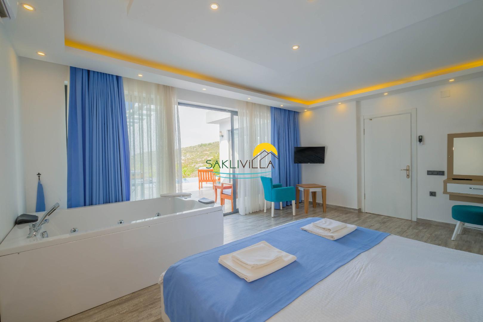Kalkan Üzümlü'de yer alan Villa Esin Üzümlükorunaklı havuzlu, jakuzili tatil villa seçeneklerimizdendir.