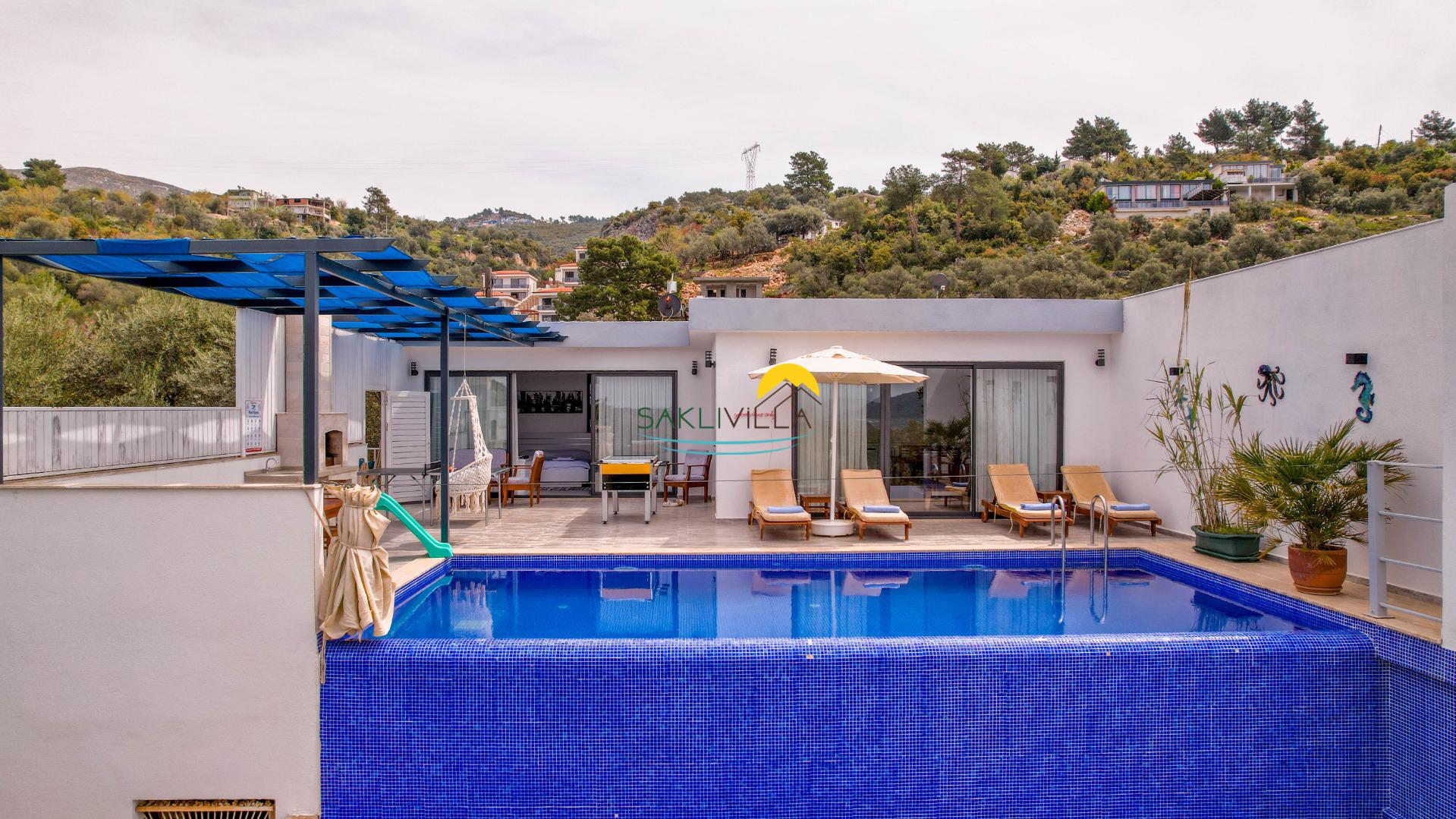 Villa Esra, huzurlu bir atmosfer sunan korunaklı bir yapıya sahiptir. Özellikle gizlilik arayan aileler ve çiftler için tasarlanmış bu kiralık villa, hem iç hem de dış mekanlarındaki ergonomik ve estetik tasarımıyla dikkat çekmektedir. Korunaklı havuzu, misafirlerin rahat bir şekilde güneşlenip, yüzme keyfini çıkarmalarına imkan tanırken, çevresindeki doğal peyzaj ile de şıklığını artırmaktadır.