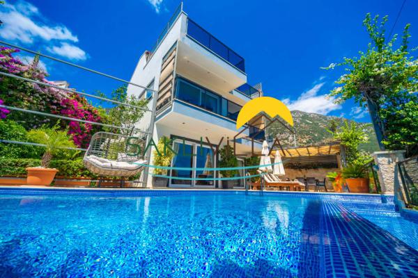 Villa Melisa; Muhteşem mimarıyla, bahçe yapısıyla ve hem havuzdan hem de teras katından mükemmel manzaraya sahiptir. Villa Melis kalkan merkezde yer alıp bir çok yere yürüme mesafesindedir.