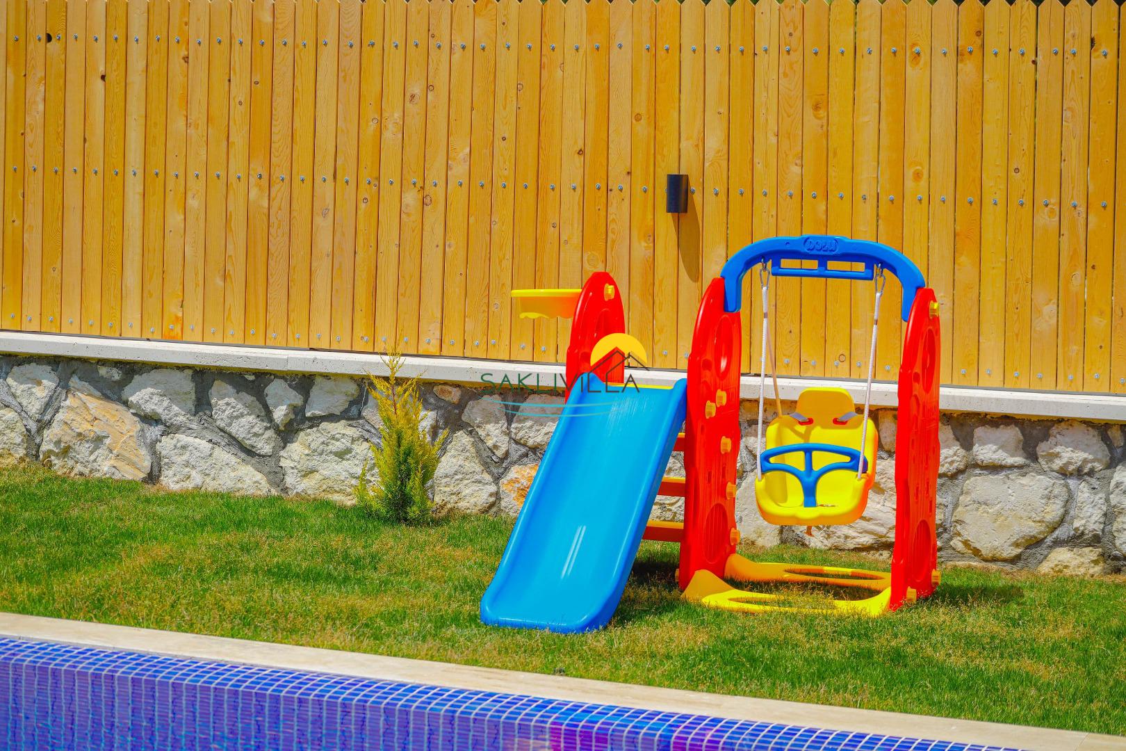 Villanın kendine özel geniş çim bahçe alanı, misafirlerine yeşil bir cennet sunmakta ve açık havada vakit geçirebilmeleri için çeşitli imkânlar tanımaktadır. Bahçenin sunduğu bu alan, özellikle çocuklu aileler için aktivite ve oyun alanı oluştururken, aynı zamanda balayı çiftleri için romantik anılar biriktirmek adına mükemmel bir atmosfer yaratmaktadır. Bu tür bir doğal ortamda, misafirlerin rahatlayarak tatillerinin tadını çıkarabilecekleri, kendilerini yeniden enerji dolu hissetmeleri için gerekli olan ambiyans fazlasıyla mevcuttur.