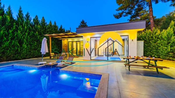 Villanın sunduğu olanaklardan biri de özel havuzdur. Tam korunaklı olması, misafirlerin güneşin tadını çıkarırken gizliliklerini de koruma imkanı tanımaktadır. Bu sayede, misafirler yılın yorgunluğunu üzerlerinden atarak, tamamen dinlenme ve eğlenme fırsatına sahip olmaktadır. Havuz etrafındaki alan, aynı zamanda bir güneşlenme terası olarak da hizmet vermekte, misafirlerin gün boyunca keyifle vakit geçirebileceği bir ortam sunmaktadır.