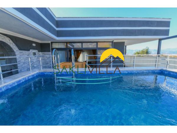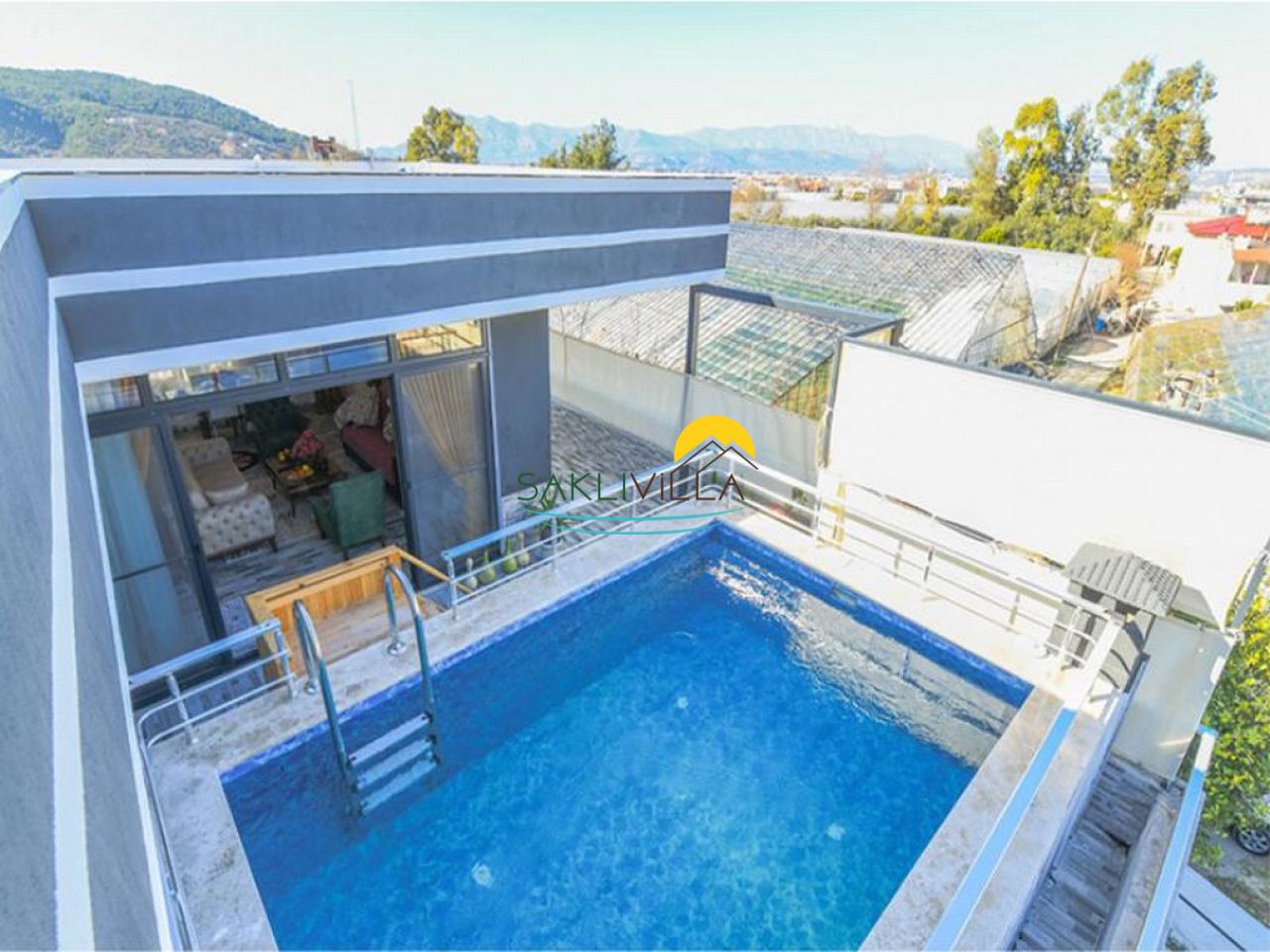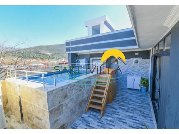 Villamızın terasında bulunan özel yüzme havuzunun korunaklı bir şekilde tasarlanması özellikle balayı çiftlerimiz ve muhafazakâr ailelerimizin memnuniyeti için yarar sağlamaktadır.