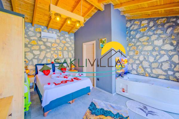 Seydikemer Karadere'de bulunan villamızın etrafı tamamen korunaklı hale getirilebilmekte olup çekirdek aileler için muhteşem bir tatil imkanı sunarken, jakuzili yatak odası ile de balayı çiftleri için ideal bir tatil imkanı sunmaktadır.