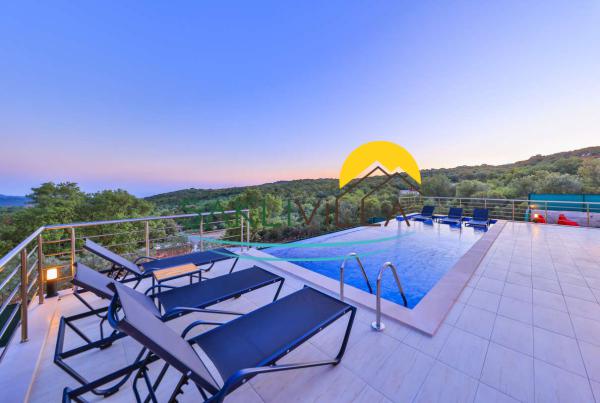 Özellikler: Özel açık yüzme havuzu, güneşlenme alanı, şezlonglar, özel bahçe, özel park yeri ve mangal alanı.