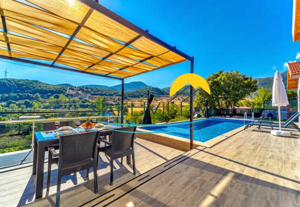 Villa Alya; Kalkan İkizce'de bulunan villamızın etrafı tamamen korunaklı hale getirilmiş olup çekirdek aileler ve balayı çiftleri için muhteşem bir tatil imkanı sunmaktadır.