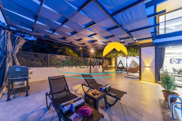Villanın en çekici özelliklerinden bir diğeri ise korunaklı özel havuzudur. Bu özel havuz, konuklara kendilerini özel hissettiren ve tamamen gizlilik içinde tatilin keyfini çıkarmalarını sağlayan bir ortam sunmaktadır. Havuzun keyfini çıkarırken, konuklar samimi anılar biriktirme ve eğlenceli vakit geçirme imkanı bulacaklardır.