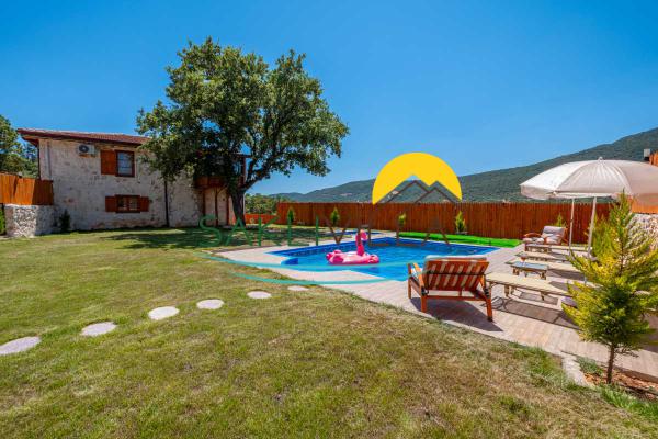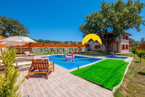 Kiralık Villanın en dikkat çekici özelliklerinden biri, misafirlerine gerçekten özel ve konforlu bir konaklama deneyimi yaşatmak amacıyla tasarlanmış olan iki adet özel korunaklı havuzudur. Bu havuzlar, konuklara güneşin keyfini çıkarırken aynı zamanda gizlilik ve rahatlık sunmaktadır. Havuzların muhteşem manzarası eşliğinde doğanın huzur içinde izlenebileceği geniş çim bahçesi, konuklara dinlendirici bir ortamda vakit geçirme fırsatı sunmaktadır.
