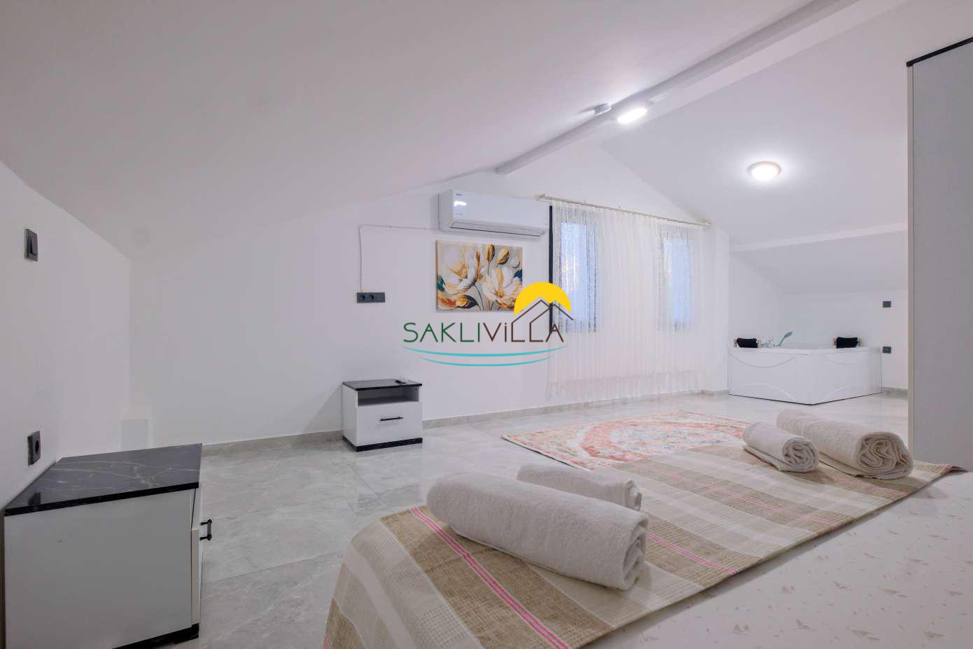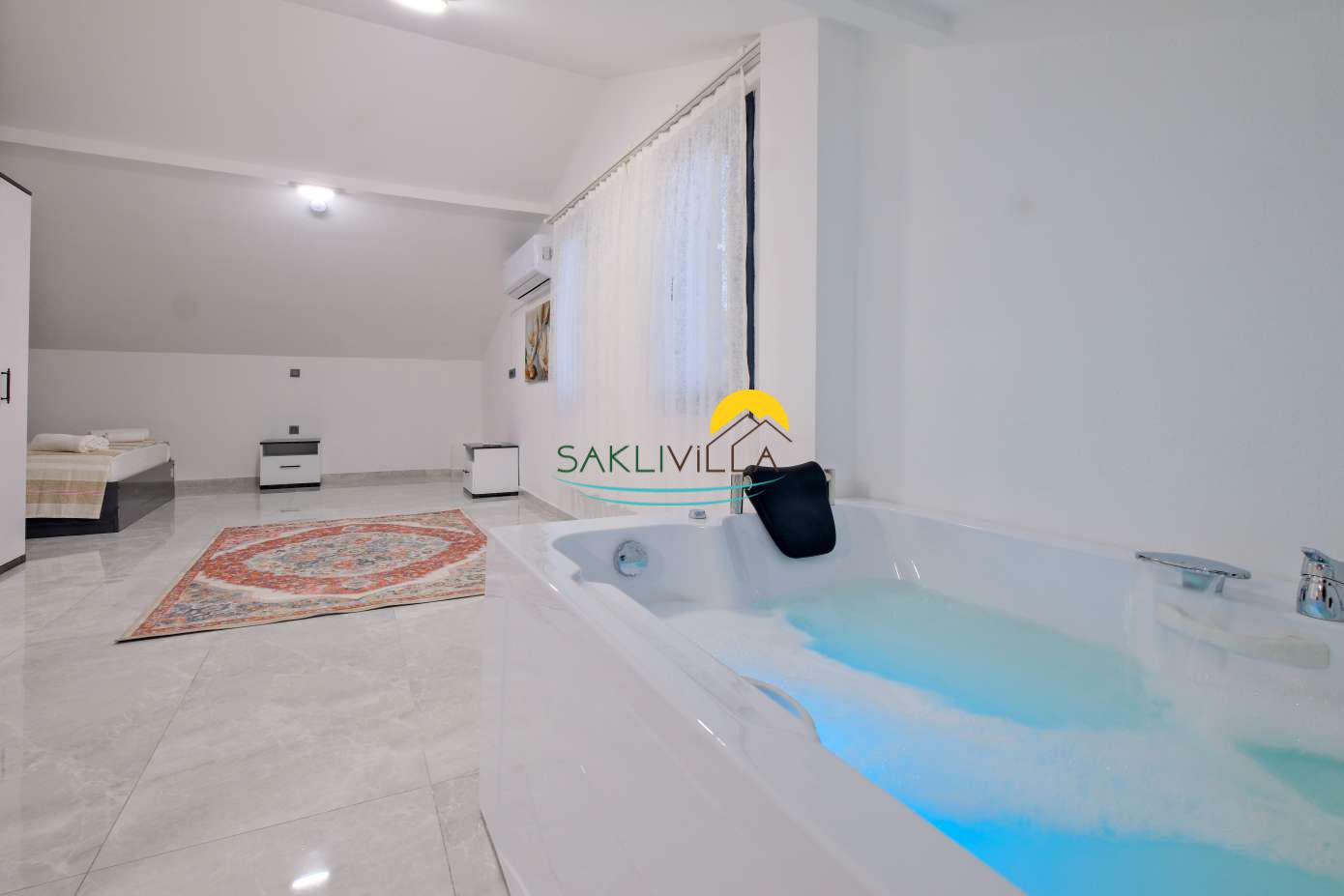 Villa Aras’ın en dikkat çekici özelliklerinden biri de özel havuzu ve jakuzisidir. Özel havuz, misafirlere havuz başında bir tatilin keyfini yaşama fırsatı verirken, jakuzisiise dinlendirici bir spa deneyimini ev konforunda sunmaktadır.