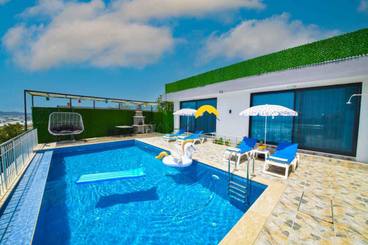 Özellikler: Özel manzaralı açık yüzme havuzu, güneşlenme alanı, şezlonglar, özel bahçe, özel park yeri ve mangal alanı.