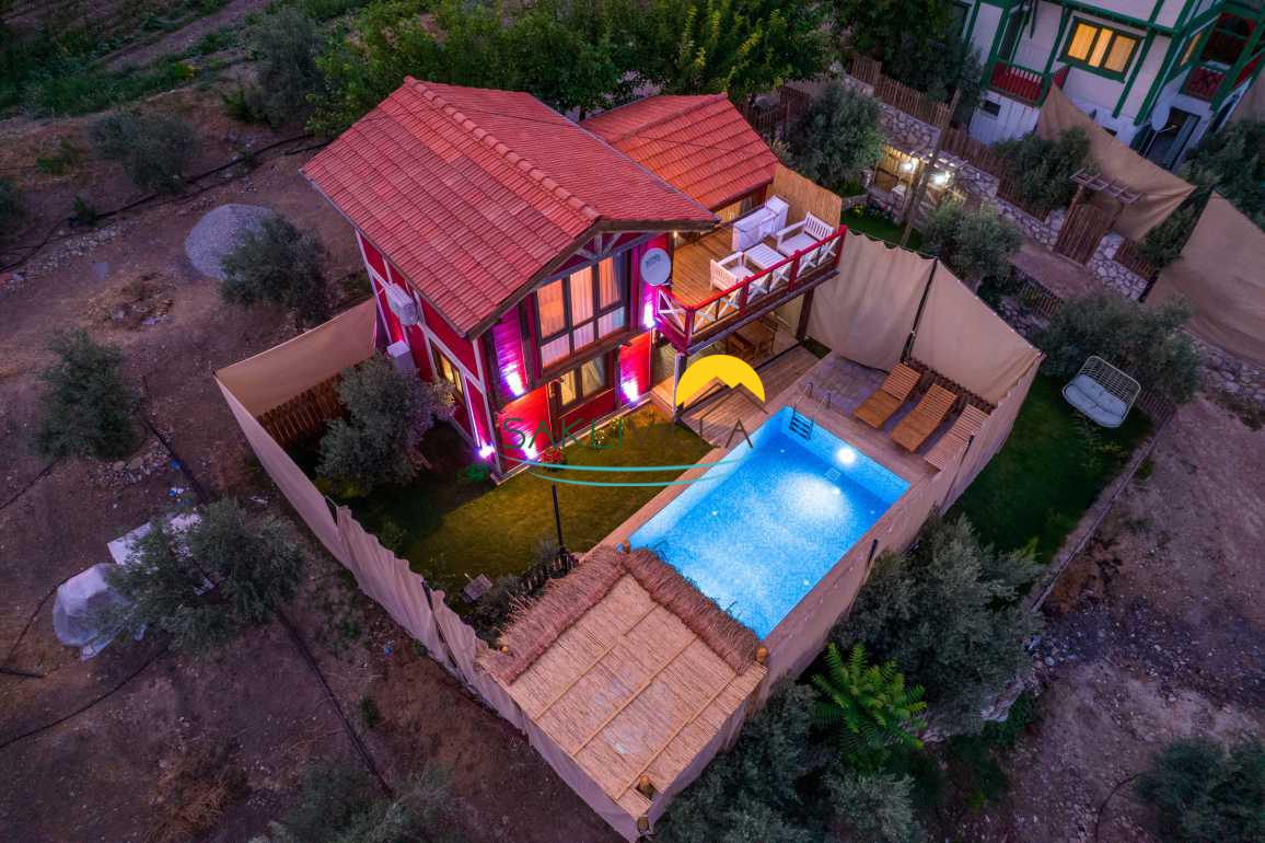 Özellikler: Özel açık yüzme havuzu, güneşlenme alanı, şezlonglar, özel bahçe, özel park yeri ve mangal alanı.