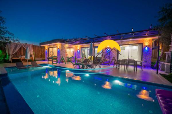 Kiralık Villa Aslanbey, Kalkan Kınık'ta huzurlu, konforlu ve özel bir tatil deneyimi arayan misafirler için mükemmel bir seçenektir. Özel korunaklı havuzu, geniş bahçesi, çocuk oyun alanı, sauna, langırt gibi çeşitli fonksiyonel özelliklerinin yanı sıra, 4 kişiye kadar konaklama imkanı ve ebeveyn odasındaki jakuzi ile misafirlerine unutulmaz bir tatil deneyimi sunmaktadır.