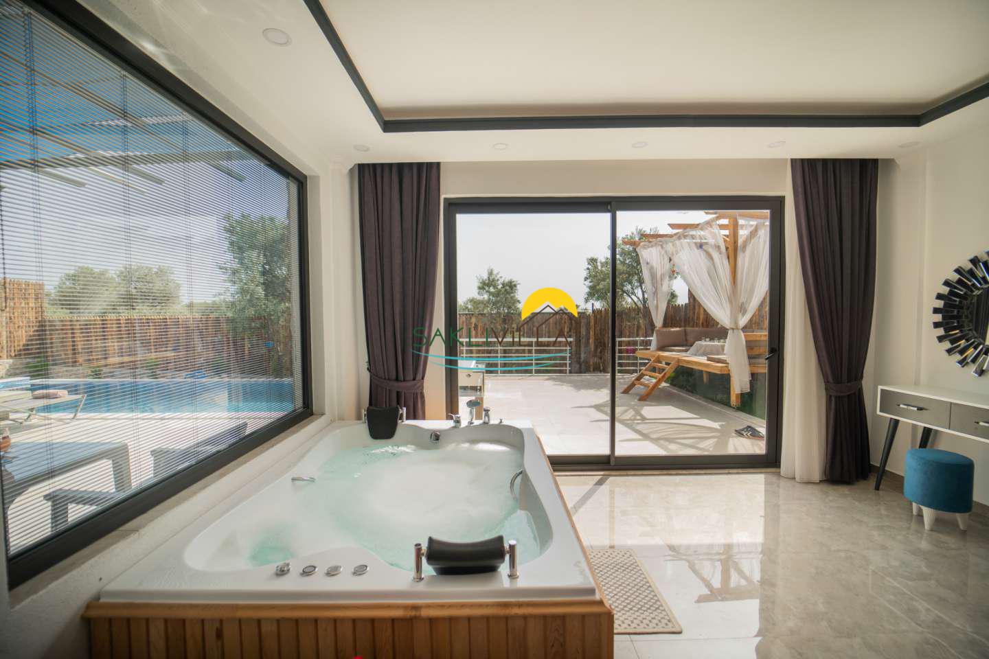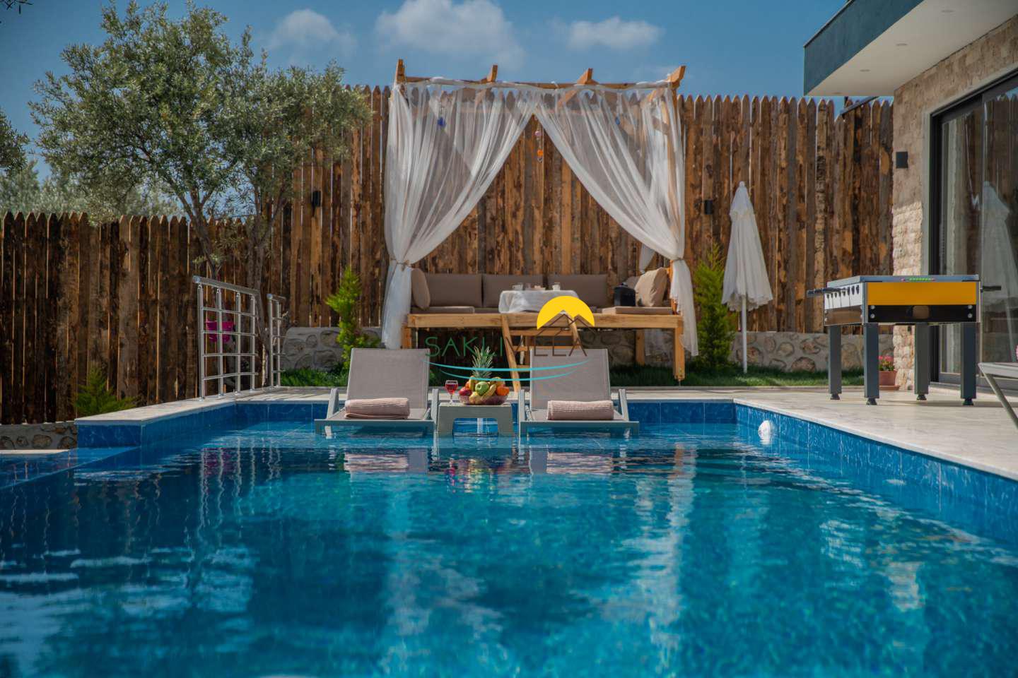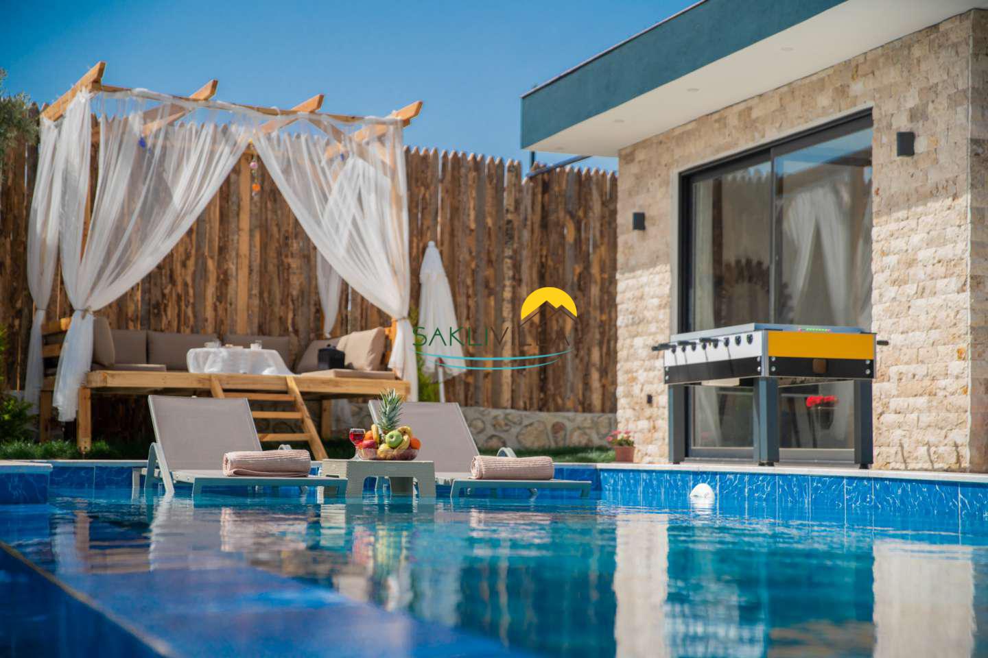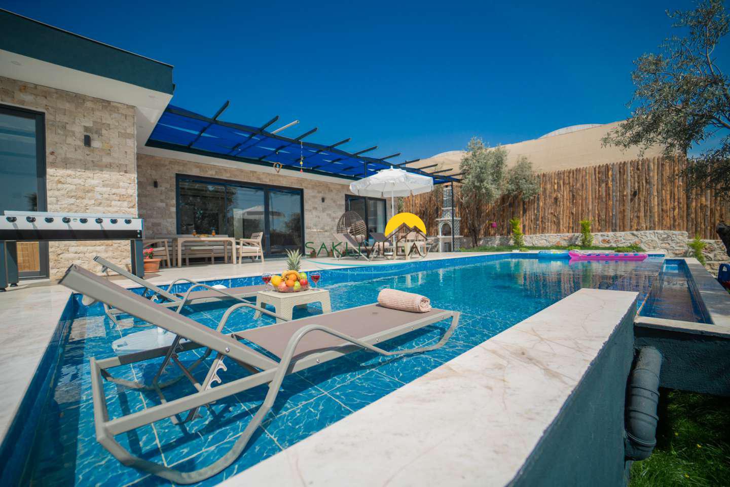 Kiralık villanın özel korunaklı havuzu, dış dünyadan izole, mahremiyetin ön planda tutulduğu bir ortamda serinleme ve dinlenme imkanı sunmaktadır. Bu özellik, özellikle gözlerden uzak bir tatil geçirmek isteyen aileler ve çiftler için büyük bir avantaj sağlamaktadır. Geniş bahçe alanı ise, çocukların güvenle oyun oynayabileceği, yetişkinlerin ise doğayla iç içe vakit geçirebileceği ferah bir yaşam alanı sunmaktadır. Çocuk oyun alanı, minik misafirlerin eğlenceli ve keyifli bir tatil geçirmesini sağlarken, ebeveynlerin de rahat bir nefes almasına olanak tanımaktadır.