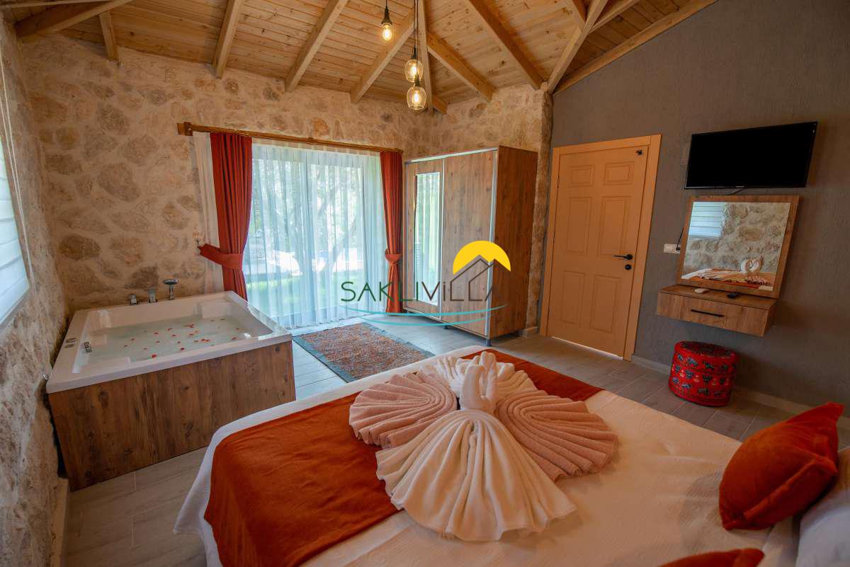 Kiralık Villamız tek yatak odalıdır. Yatak odasında çift kişilik yatak, klima, banyo, televizyon ve jakuzi bulunmaktadır. Salon içerisinde mutfak, oturma grubu, klima ve televizyon yer almaktadır.
