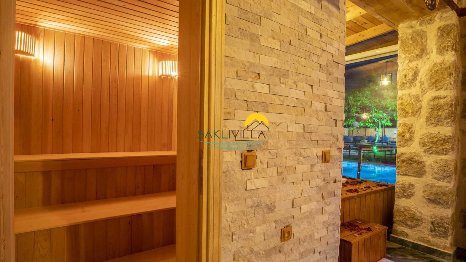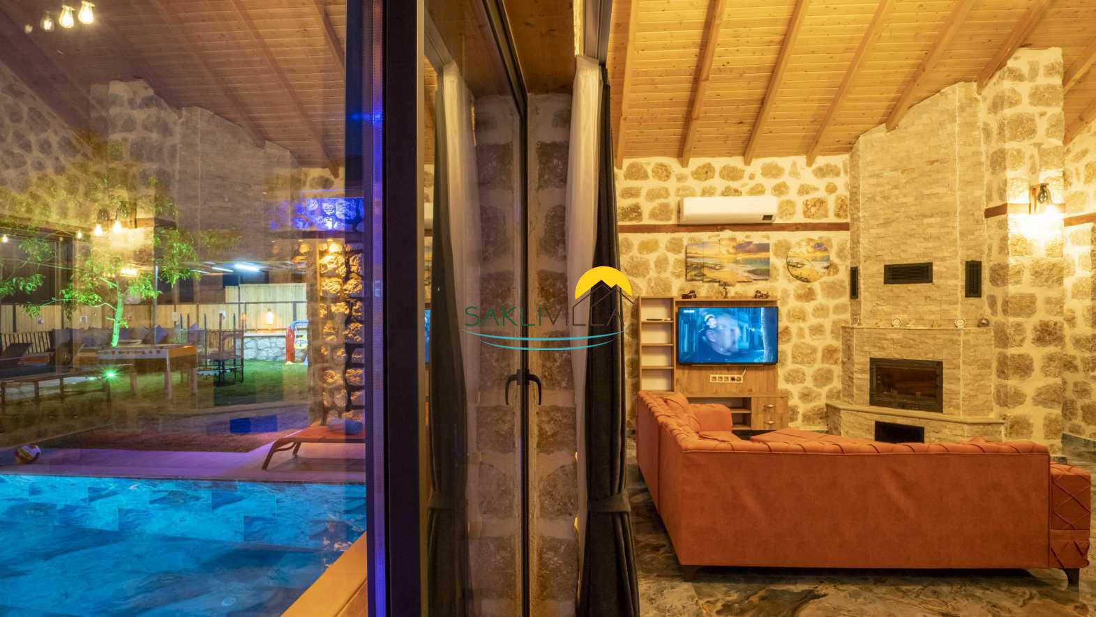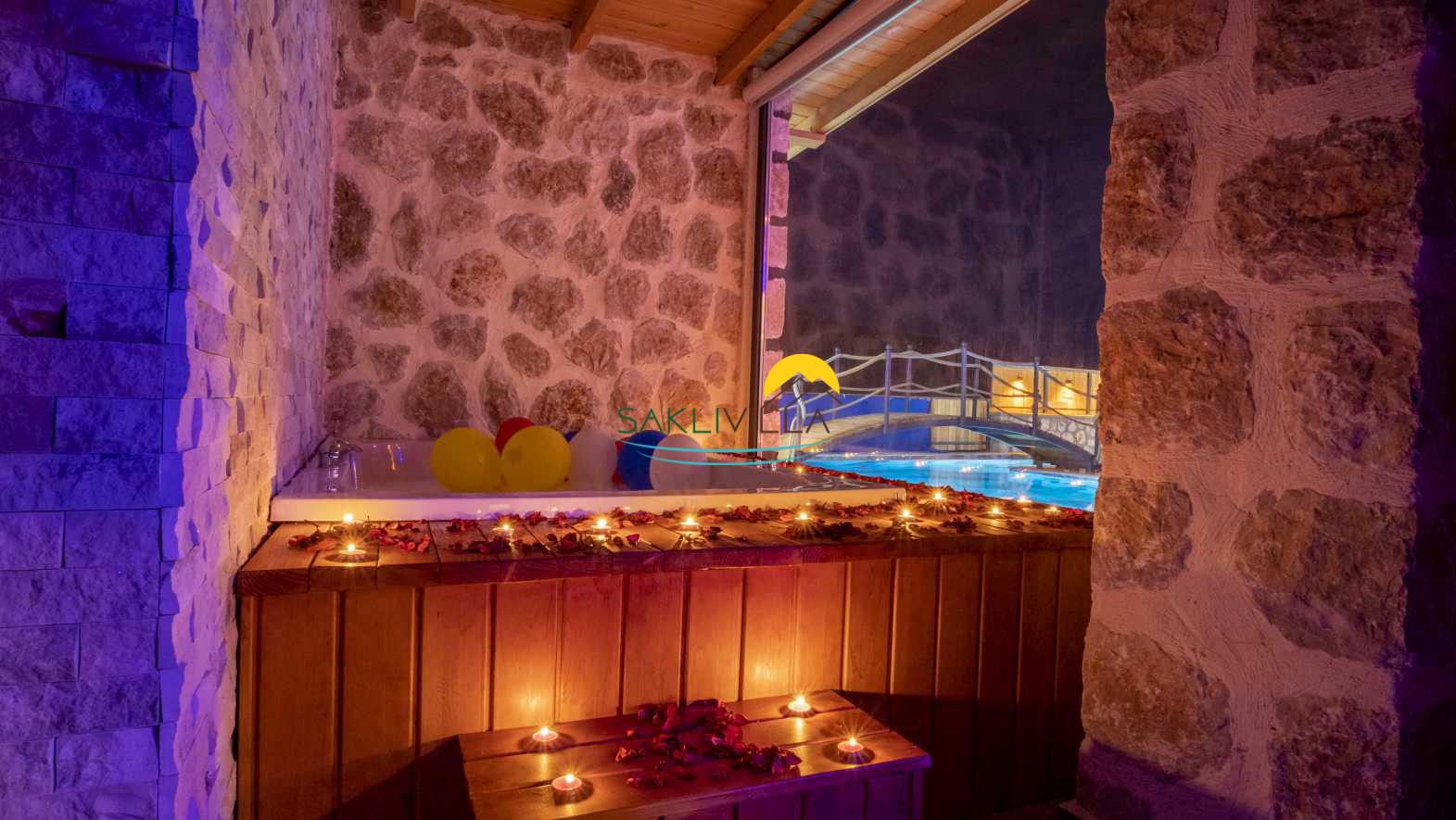 Kiralık Villa BigBoss, geleneksel Türk mimarisinin modern unsurlarla harmanlandığı bir yapıya sahiptir. Taş dış cephe, villaya hem estetik bir görünüm kazandırmakta hem de bölgenin doğal güzellikleri ile uyum sağlamaktadır. Dış mekanın yanı sıra, iç mekanda kullanılan sofistike tasarımlar ve modern eşyalar, tatilinizi daha keyifli hale getirmek için düşünülmüştür. Geniş salon ve mutfak alanları, misafirlerin sosyal etkinliklerini rahatça gerçekleştirmelerine olanak tanırken, odaların büyüklüğü konforu bir üst seviyeye taşımaktadır. Özellikle, odalarda bulunan jakuzi, misafirlerin rahatlaması ve yılın stresini üzerlerinden atması için ideal bir alan sunmaktadır.