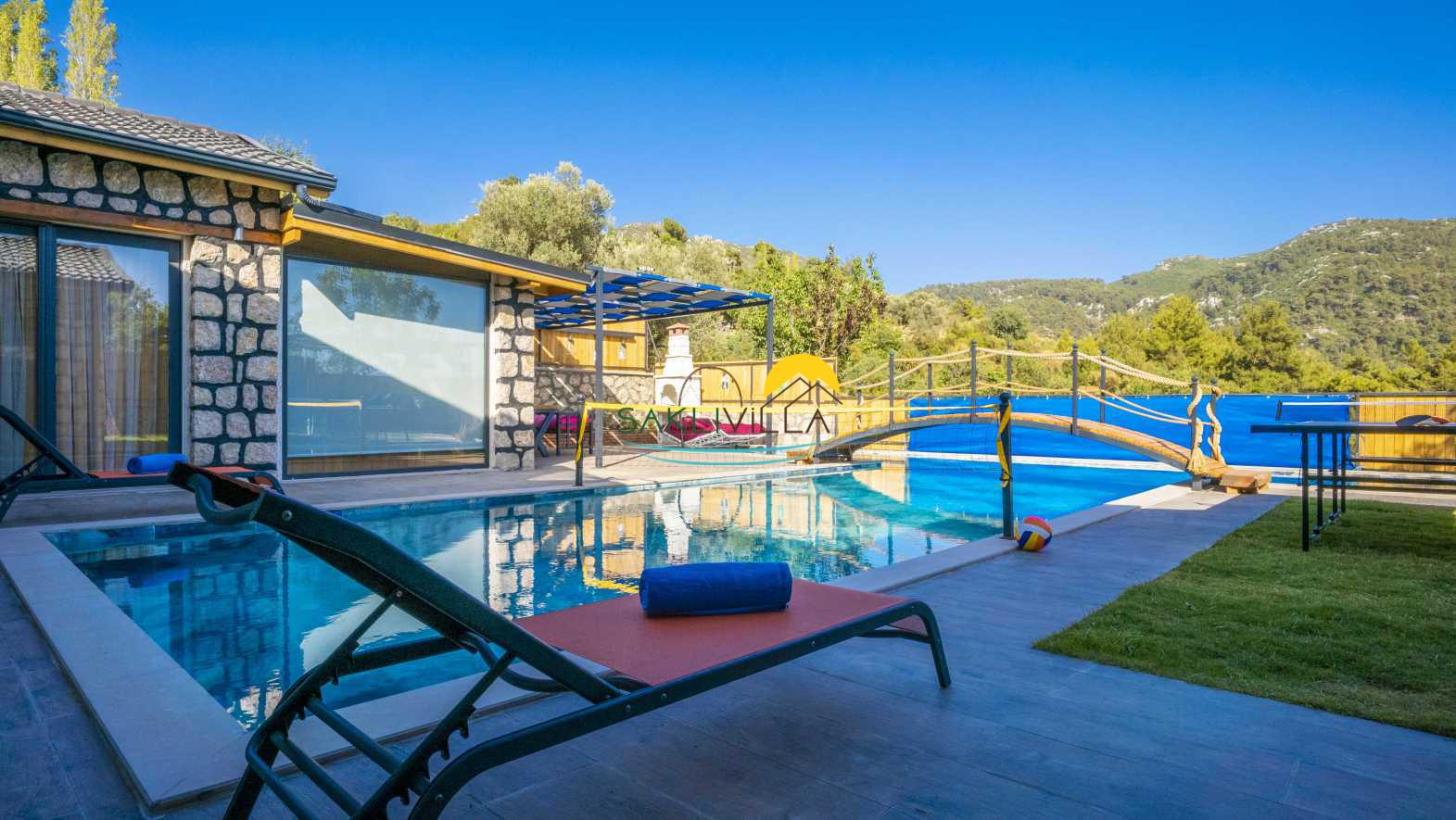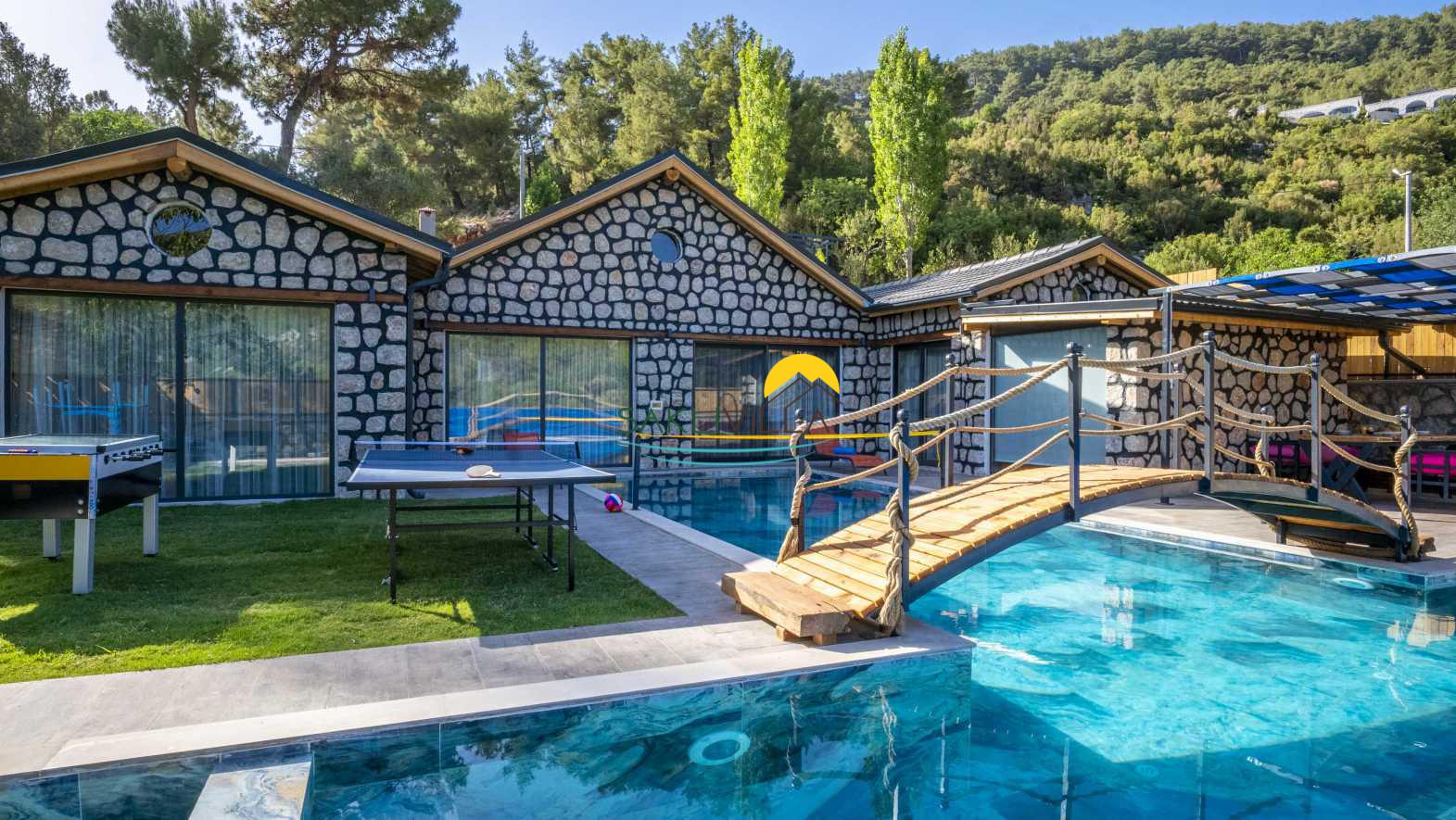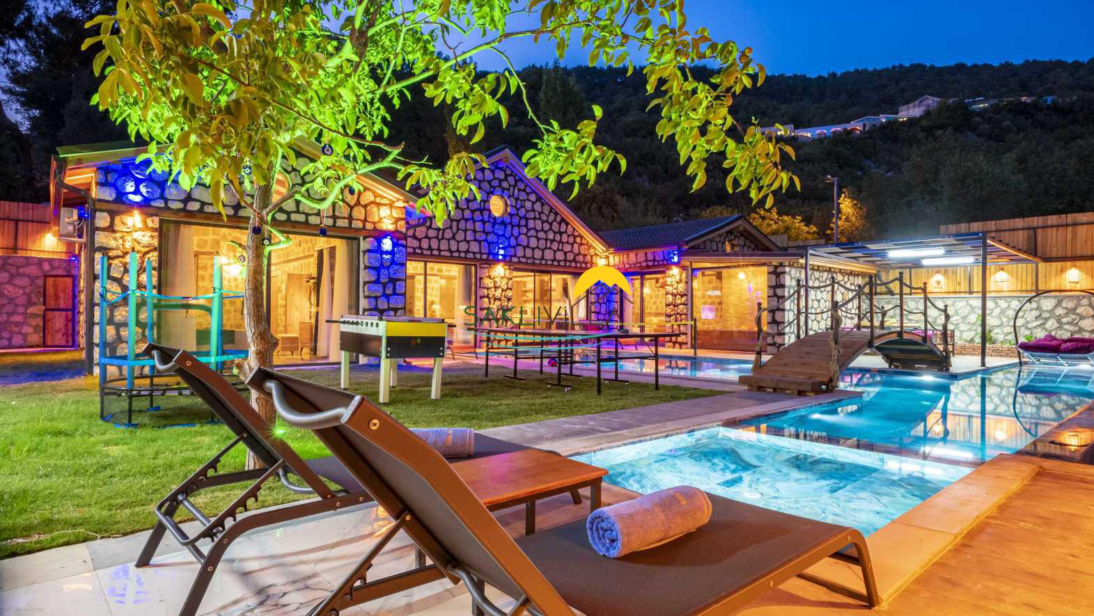 Villa BigBoss, sadece bir konaklama yeri değil, aynı zamanda bir eğlence merkezidir. Geniş bahçesi içinde yer alan özel korunaklı havuzu, villa konuklarına hem serinleme hem de eğlence imkanı sunmaktadır. Havuz terası, geniş alanı, şezlongları ve yemek masası ile ailelerin birlikte keyifli zaman geçirebileceği bir atmosfer sağlamaktadır. Ayrıca, villa bünyesindeki çeşitli eğlence olanakları, özellikle aileler ve balayı çiftleri için büyüleyici bir deneyim sunmaktadır. Masa tenisi, langırt ve oyun parkı gibi aktivitelerle, çocuklarınızın da eğlenceli saatler geçirmesi mümkün olacaktır.