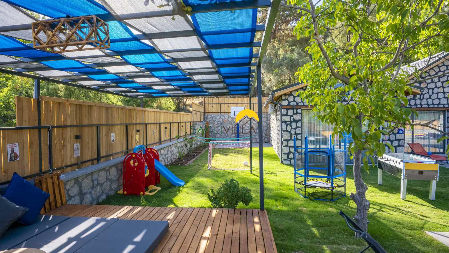 Bu gibi olanaklarla Villa BigBoss, tatilin sadece dinlenmek değil, aynı zamanda eğlenmek için de bir fırsat sunduğunun bilincindedir, Geniş çim bahçesinde oturma köşkü, trambolin ve mini futbol kalesi gibi alanlar, hem çocukların hem de yetişkinlerin eğlenceli vakit geçirmesine yardımcı olmaktadır.