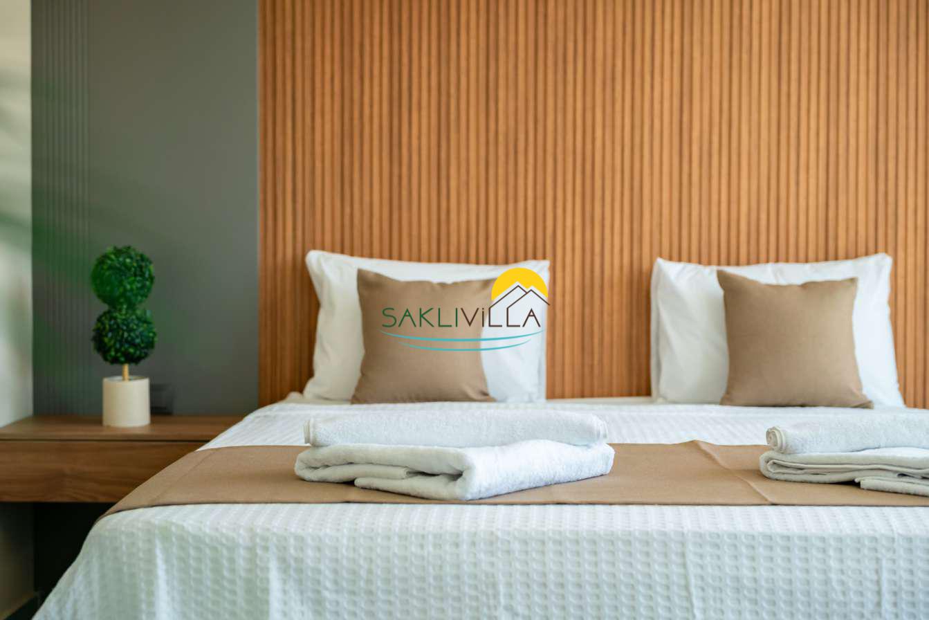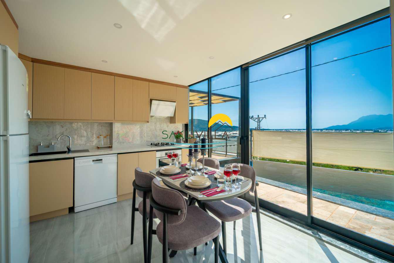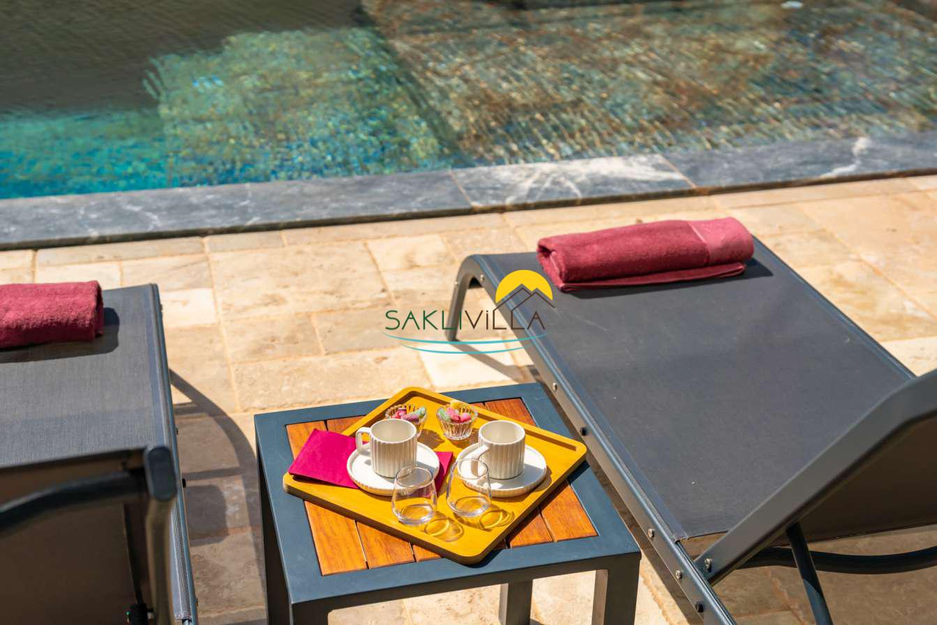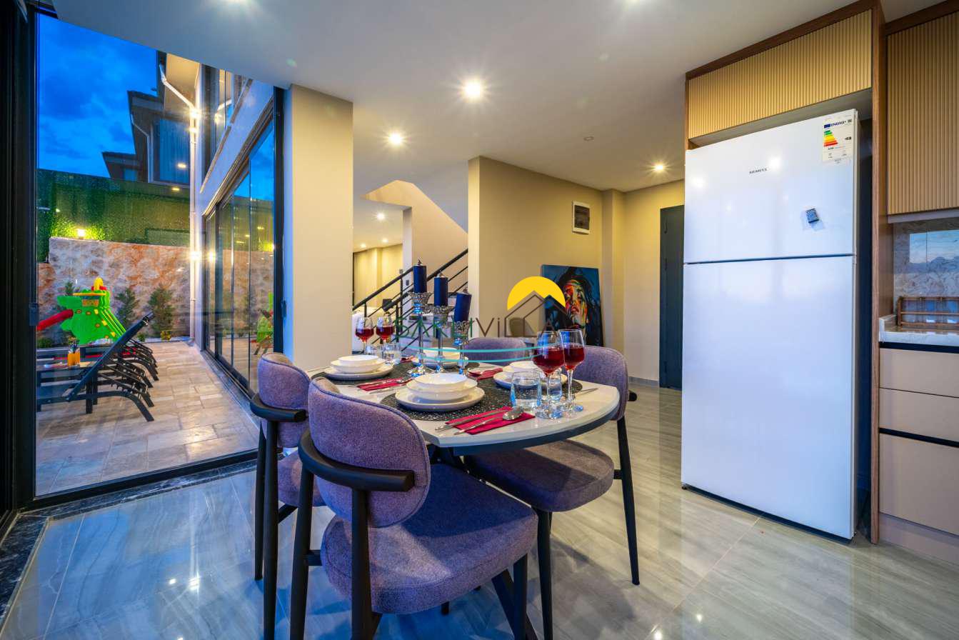 Villa içi mimarisi de göz dolduran özellikler taşımaktadır. Dubleks yapısı ile ferah bir yaşam alanı sunarken, iki yatak odası modern tasarım öğeleriyle döşenmiş ve her türlü konfora uygun olacak şekilde donatılmıştır. Yatak odalarındaki geniş ve rahat yataklar, kaliteli uyku deneyimi sağlamakta ve tatil süresince konukların yenilenmesini mümkün kılmaktadır. Salon ve oturma alanları ise, açık plan yerleşimi sayesinde sosyal etkileşimler ve dinlenme ihtiyacına optimal şekilde cevap vermektedir. Ayrıca, modern mutfak imkanı da konukların villa içerisindeyken kendi yemeklerini hazırlayabilmelerine olanak tanımaktadır.