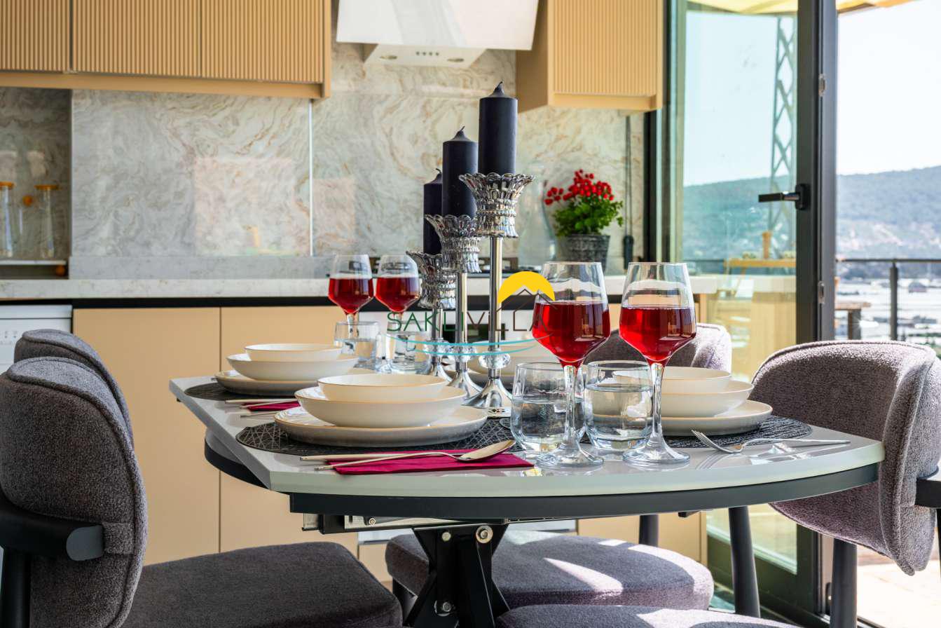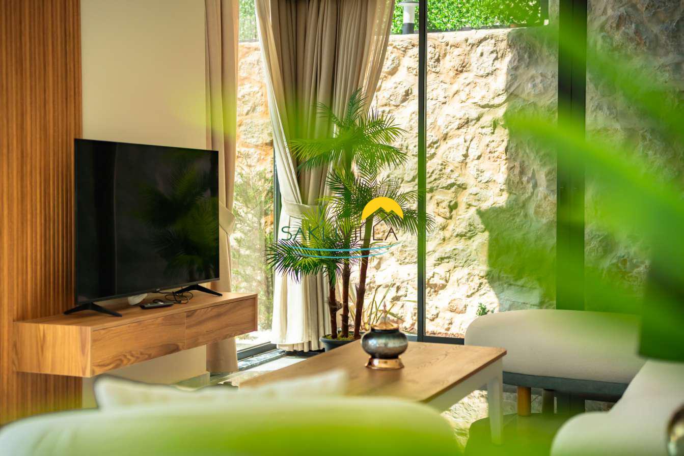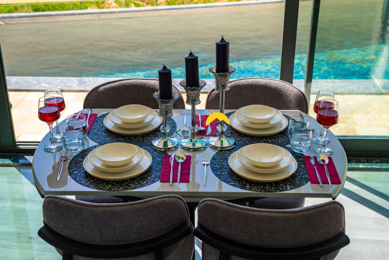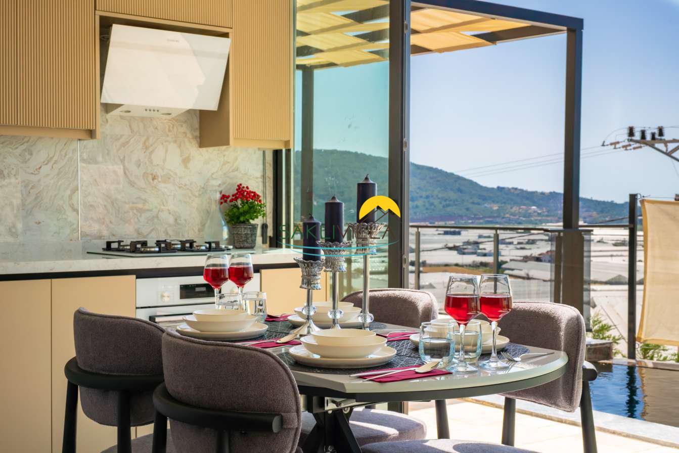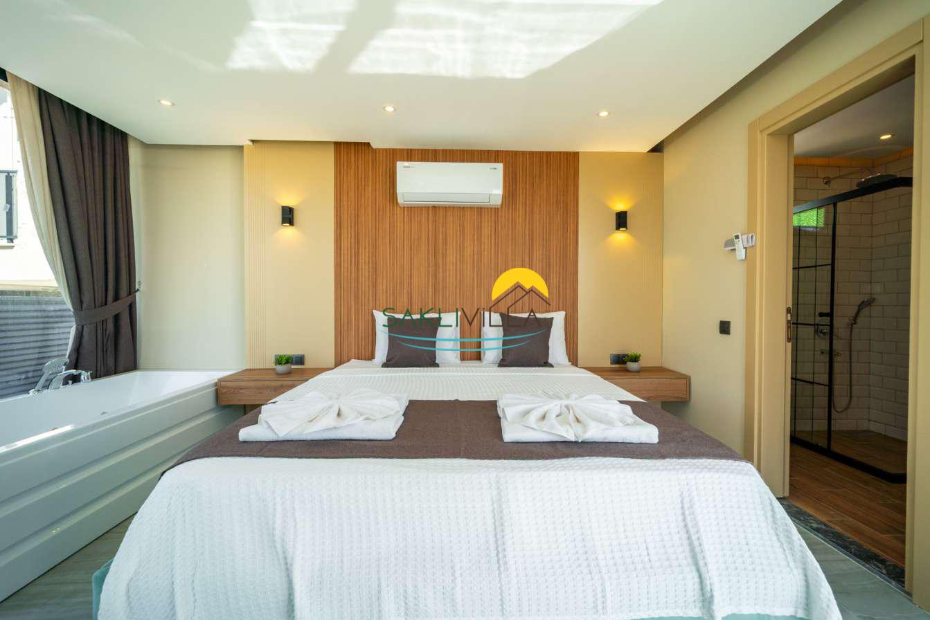 Villa içi mimarisi de göz dolduran özellikler taşımaktadır. Dubleks yapısı ile ferah bir yaşam alanı sunarken, iki yatak odası modern tasarım öğeleriyle döşenmiş ve her türlü konfora uygun olacak şekilde donatılmıştır. Yatak odalarındaki geniş ve rahat yataklar, kaliteli uyku deneyimi sağlamakta ve tatil süresince konukların yenilenmesini mümkün kılmaktadır. Salon ve oturma alanları ise, açık plan yerleşimi sayesinde sosyal etkileşimler ve dinlenme ihtiyacına optimal şekilde cevap vermektedir. Ayrıca, modern mutfak imkanı da konukların villa içerisindeyken kendi yemeklerini hazırlayabilmelerine olanak tanımaktadır.