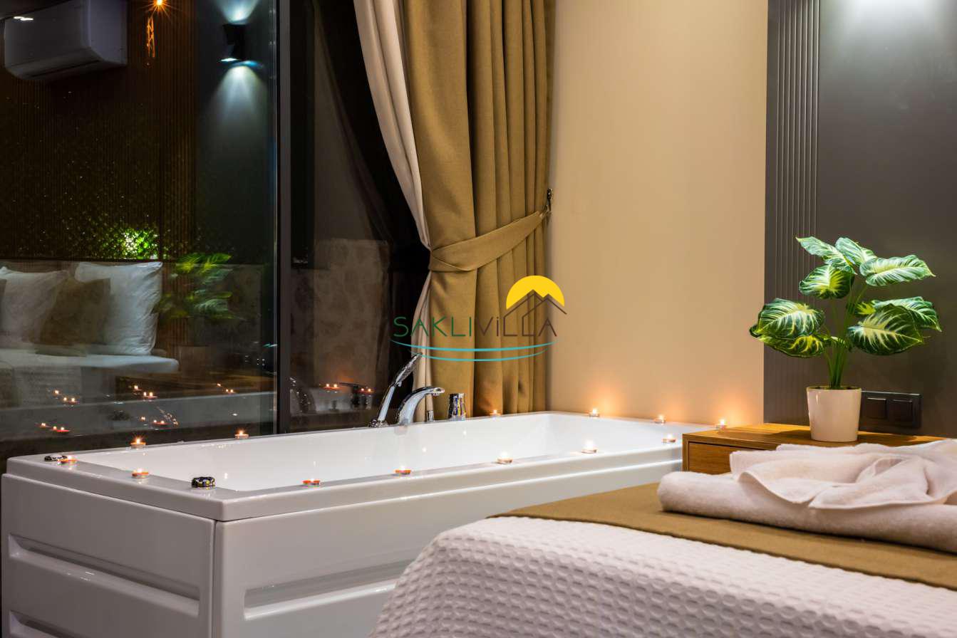 Ayrıca suit yatak odasında yer alan jakuzi, misafirlere günün yorgunluğunu atabilecekleri lüks ve rahatlatıcı bir alan sunarken, aynı zamanda romantik ve keyifli anlar yaratmaktadır.