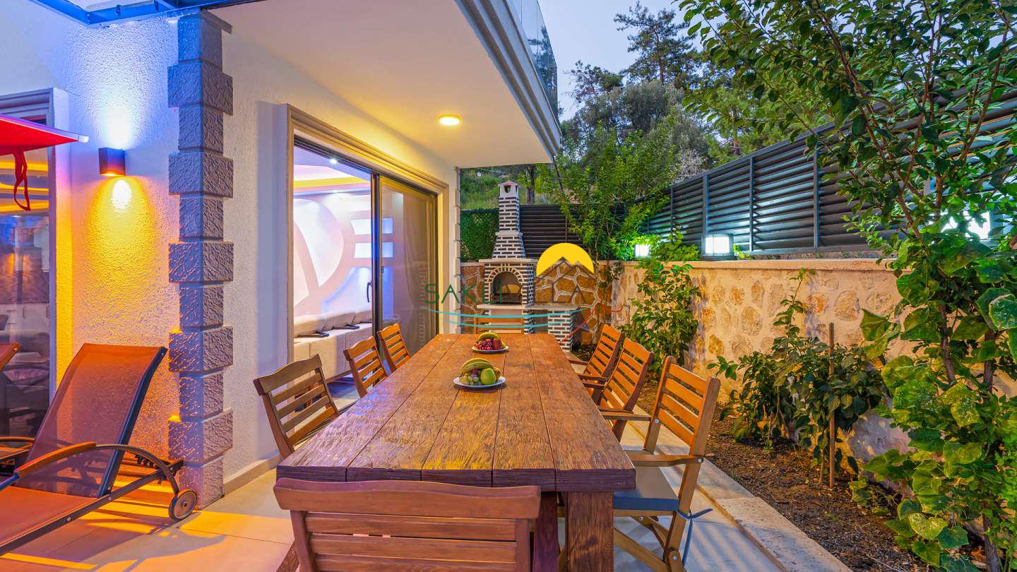 Villa Breeze'in sunduğu olanaklar sadece iç alanlarla sınırlı değildir. Dış mekanında yer alan özel korunaklı havuz, misafirlere mahremiyet içerisinde güneşlenme ve serinleme imkanı sunmaktadır. Bu havuz, tatilin keyfini doyasıya çıkaracak bir alan yaratmakta, misafirlerin günlerini eğlence ve rahatlama ile geçirmelerine olanak sağlamaktadır. Villanın çevresindeki doğal güzellikler, yeşil doğası, tatilinize eşlik eden göz alıcı bir fon oluşturmaktadır.