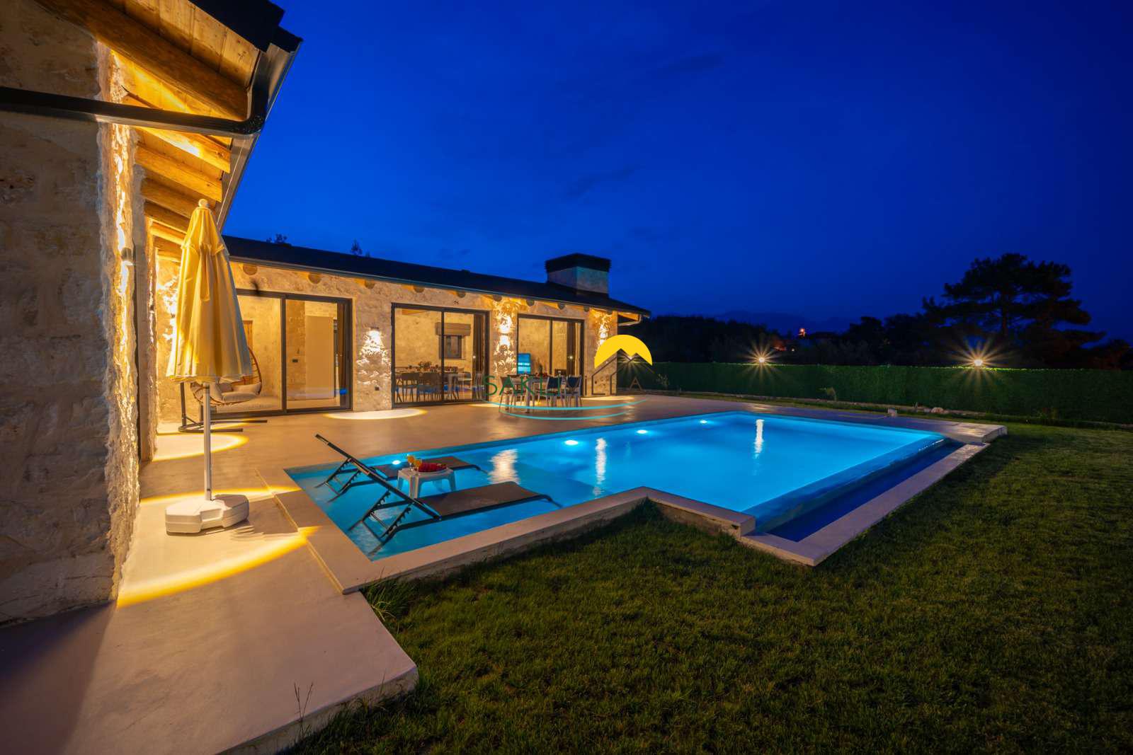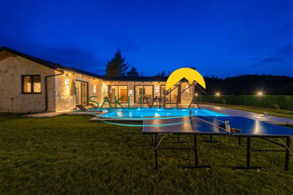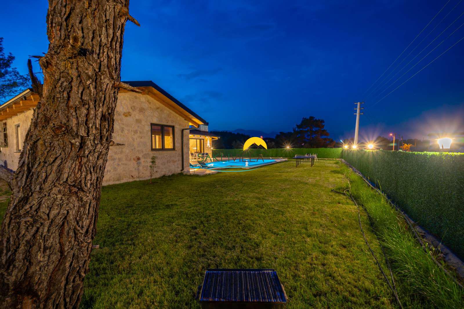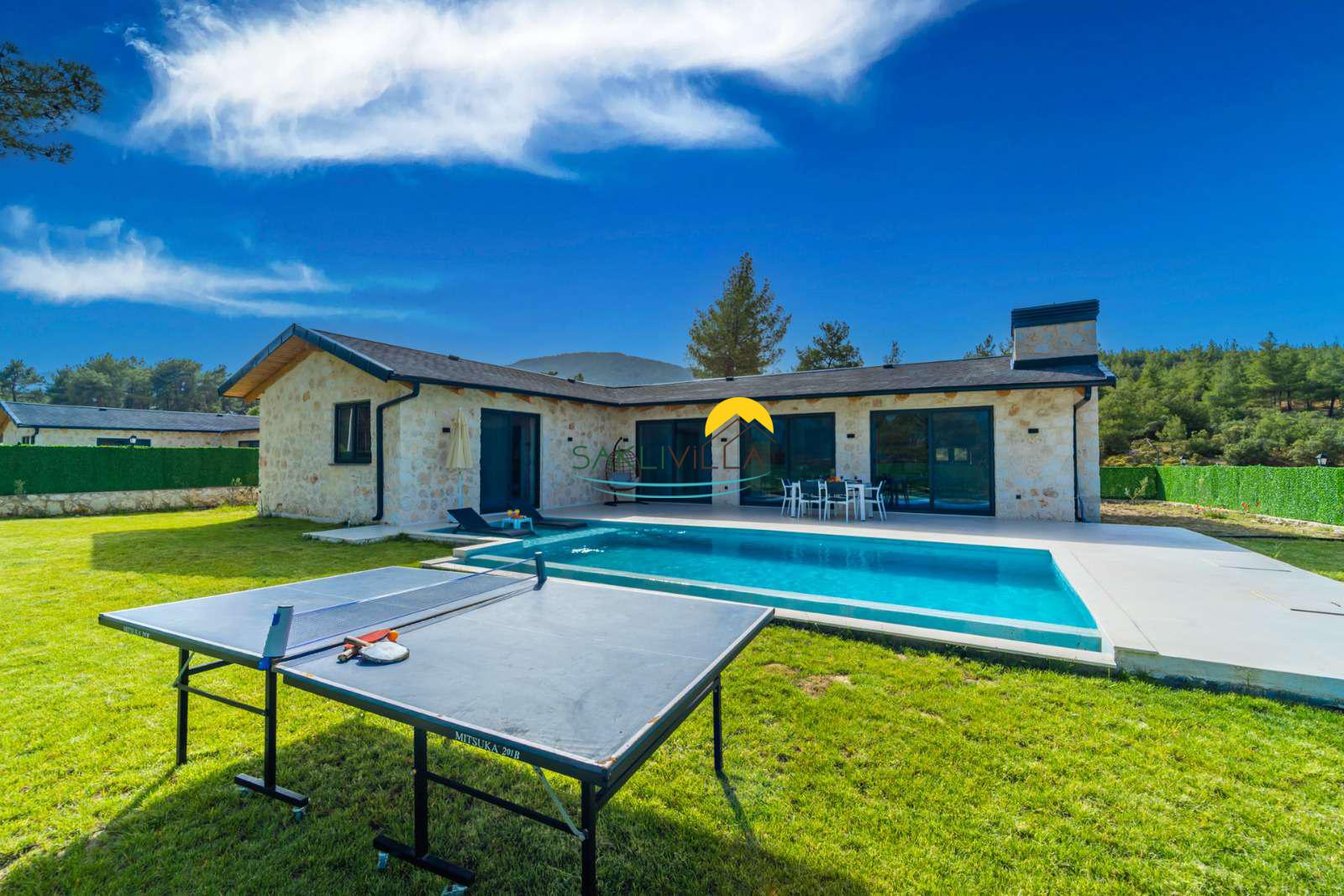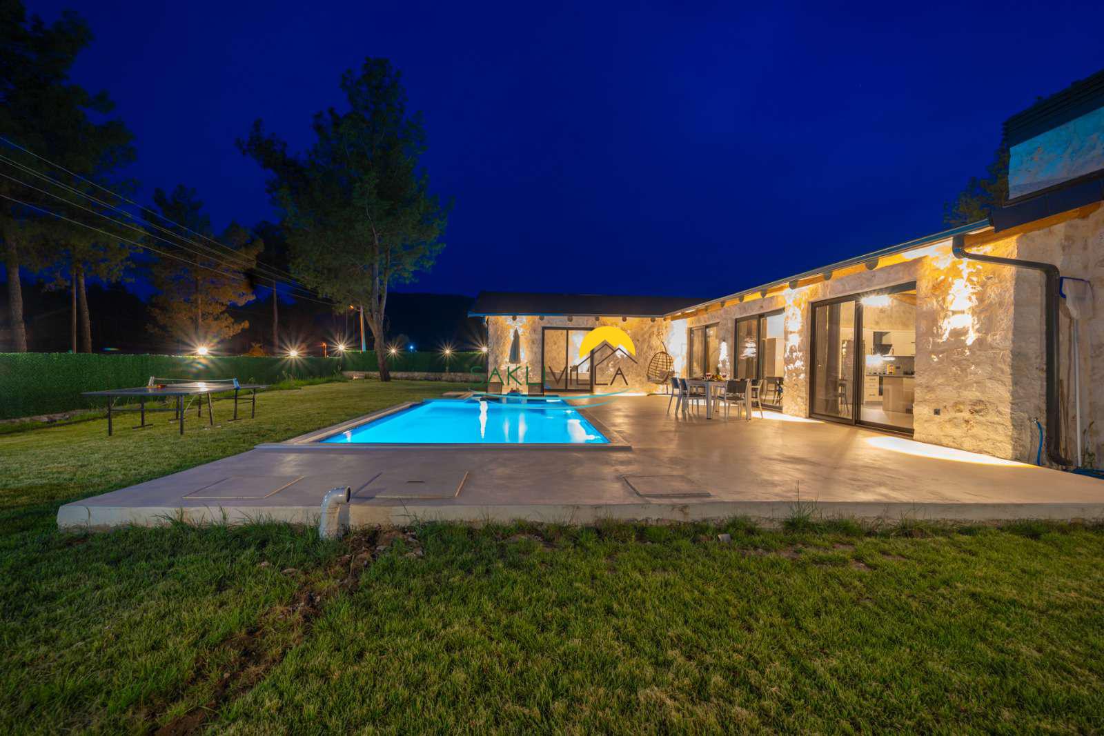 Havuz : Villamızın bahçesi içerisinde 160 cm derinlik, 10 m uzunluk ve 4 m genişlikte korunaklı özel havuz bulunmaktadır. Korunaklı özel açık yüzme havuzu, güneşlenme alanı, şezlonglar, özel bahçe, özel park yeri ve mangal alanı.