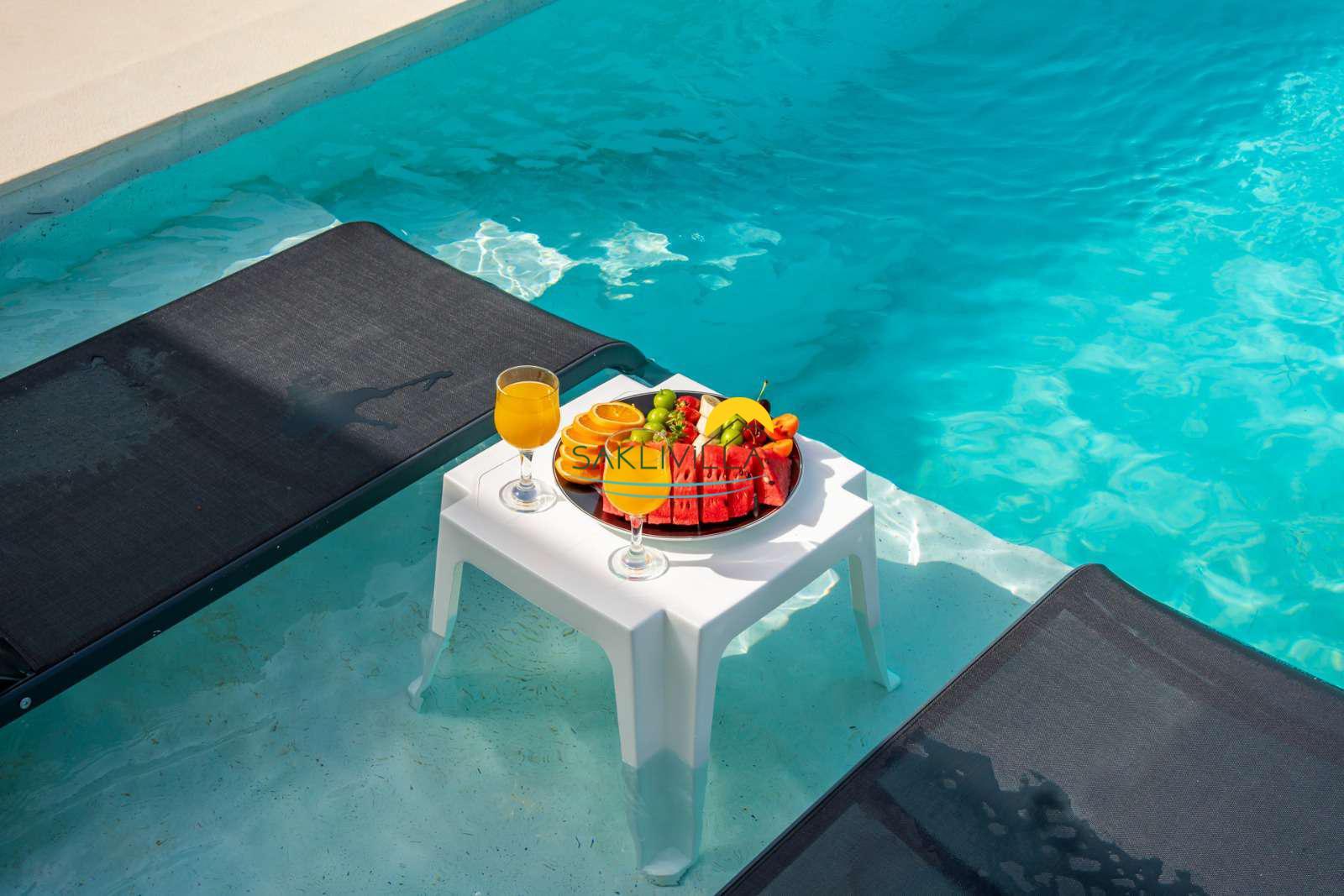 Tamamen size ait, gözlerden uzak özel havuzunuzda serinleyebilir ve güneşlenme terasında Kaş güneşiyle bronzlaşabilirsiniz.