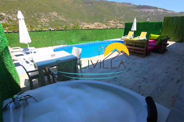 Villa Çimen'de bahçede havuz başı bahçe jakuzisi bulunmaktadır.