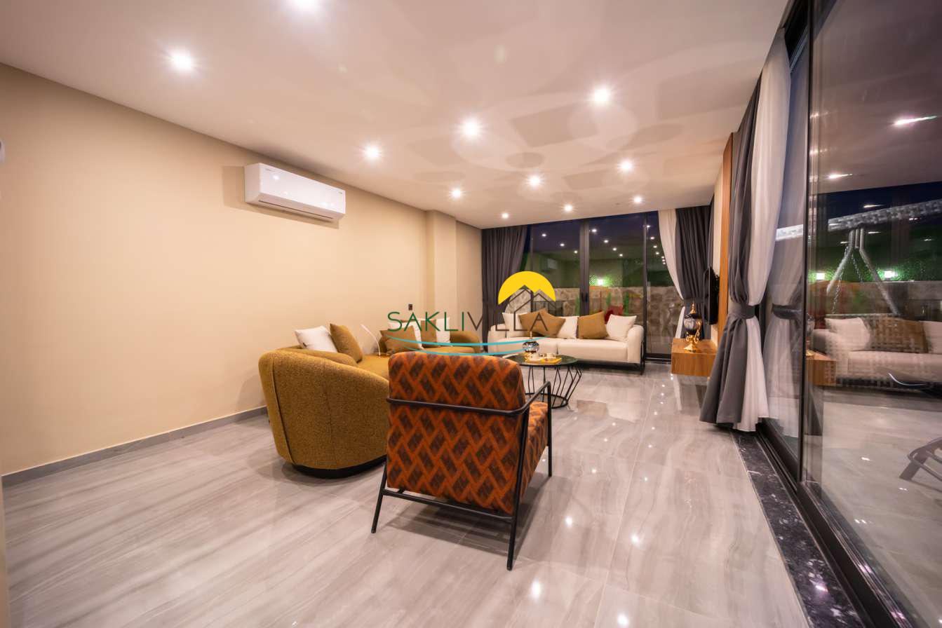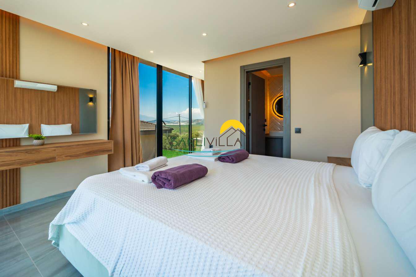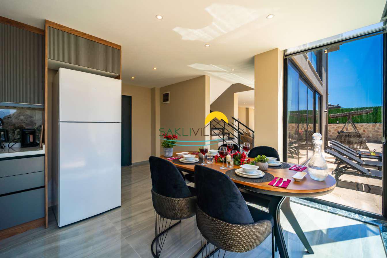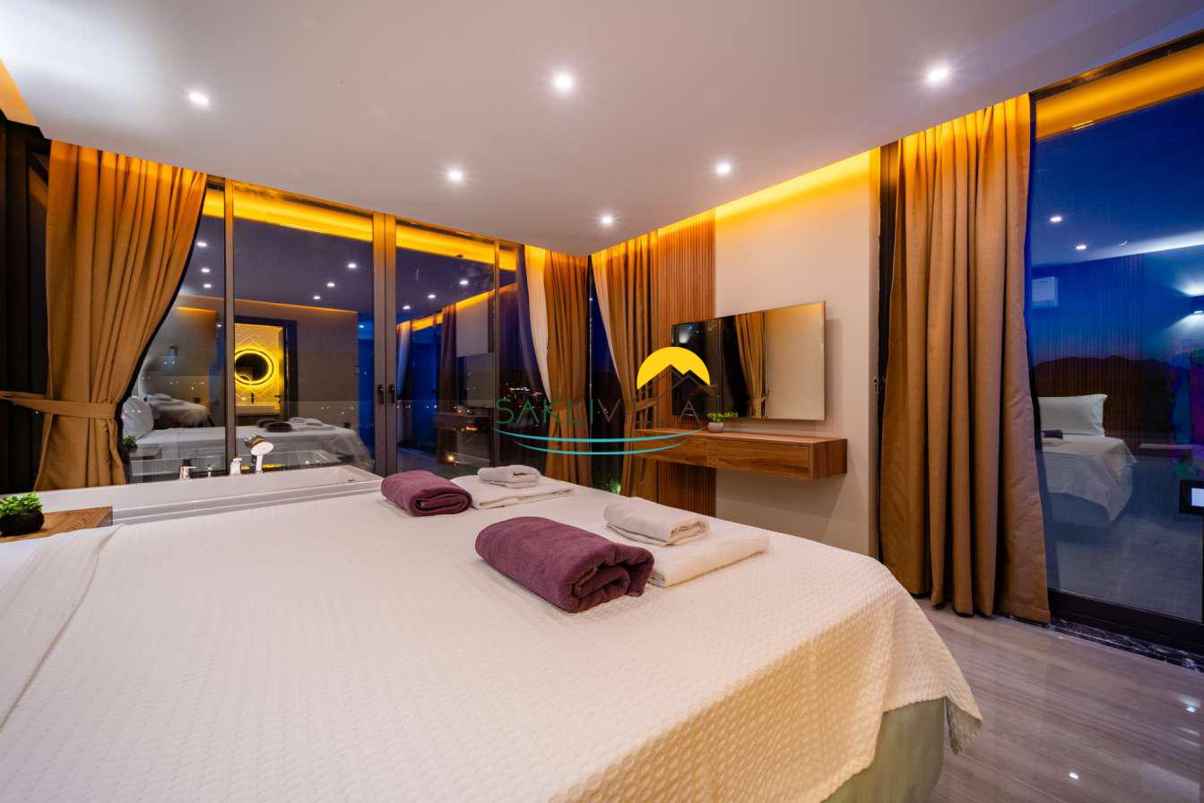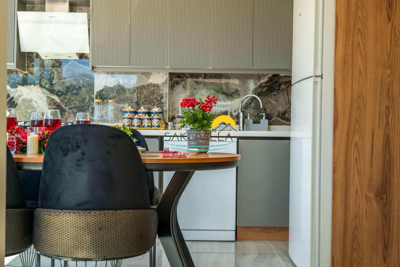 Villa içi mimarisi de göz dolduran özellikler taşımaktadır. Dubleks yapısı ile ferah bir yaşam alanı sunarken, iki yatak odası modern tasarım öğeleriyle döşenmiş ve her türlü konfora uygun olacak şekilde donatılmıştır. Yatak odalarındaki geniş ve rahat yataklar, kaliteli uyku deneyimi sağlamakta ve tatil süresince konukların yenilenmesini mümkün kılmaktadır. Salon ve oturma alanları ise, açık plan yerleşimi sayesinde sosyal etkileşimler ve dinlenme ihtiyacına optimal şekilde cevap vermektedir. Ayrıca, modern mutfak imkanı da konukların villa içerisindeyken kendi yemeklerini hazırlayabilmelerine olanak tanımaktadır.
