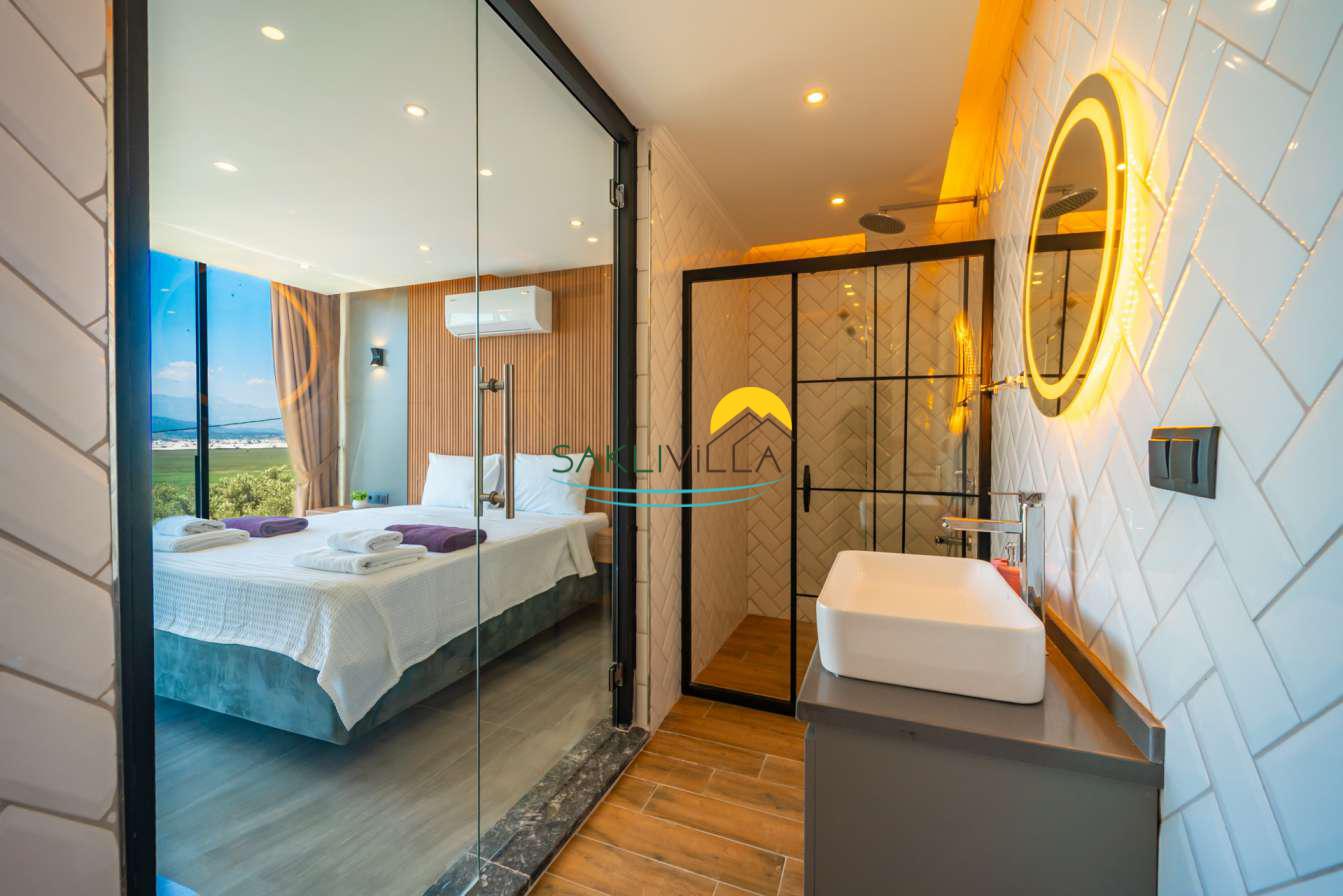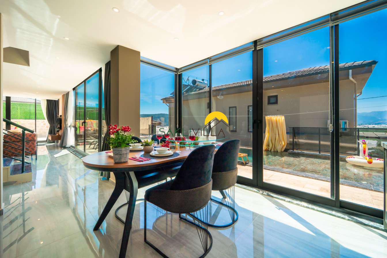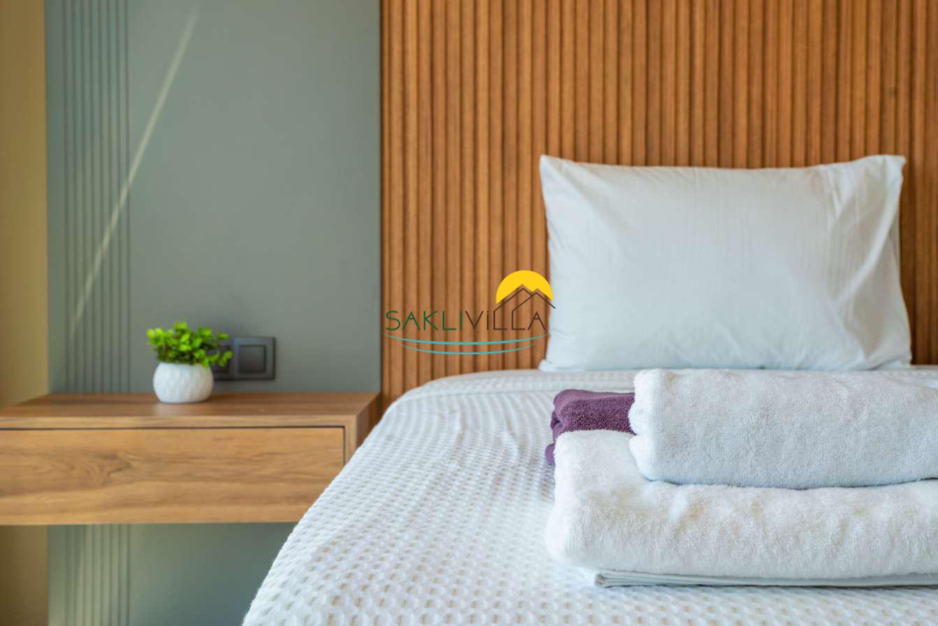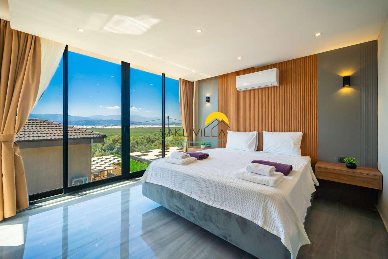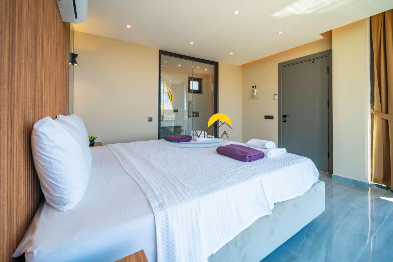 Villa içi mimarisi de göz dolduran özellikler taşımaktadır. Dubleks yapısı ile ferah bir yaşam alanı sunarken, iki yatak odası modern tasarım öğeleriyle döşenmiş ve her türlü konfora uygun olacak şekilde donatılmıştır. Yatak odalarındaki geniş ve rahat yataklar, kaliteli uyku deneyimi sağlamakta ve tatil süresince konukların yenilenmesini mümkün kılmaktadır. Salon ve oturma alanları ise, açık plan yerleşimi sayesinde sosyal etkileşimler ve dinlenme ihtiyacına optimal şekilde cevap vermektedir. Ayrıca, modern mutfak imkanı da konukların villa içerisindeyken kendi yemeklerini hazırlayabilmelerine olanak tanımaktadır.