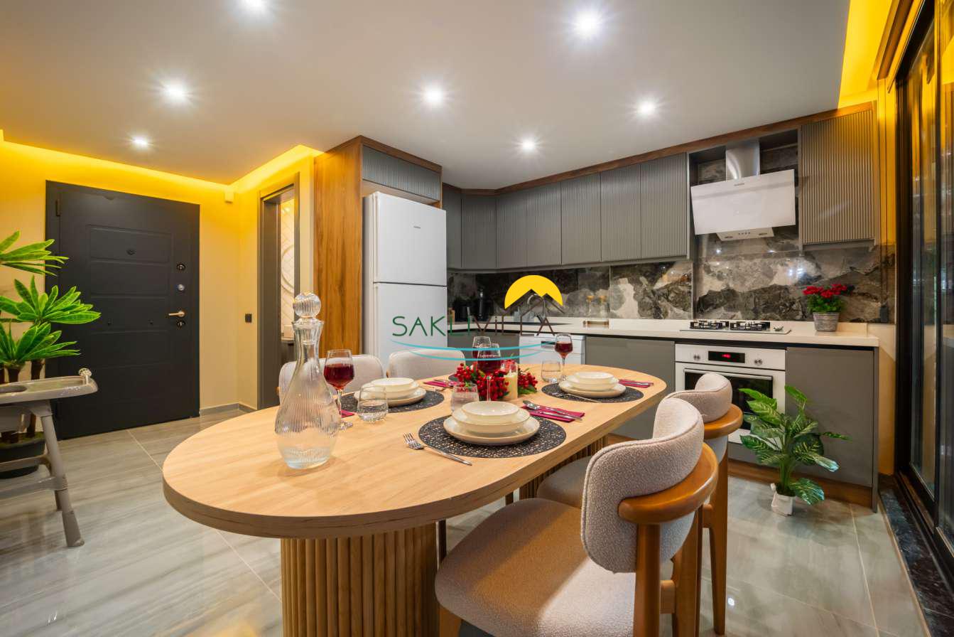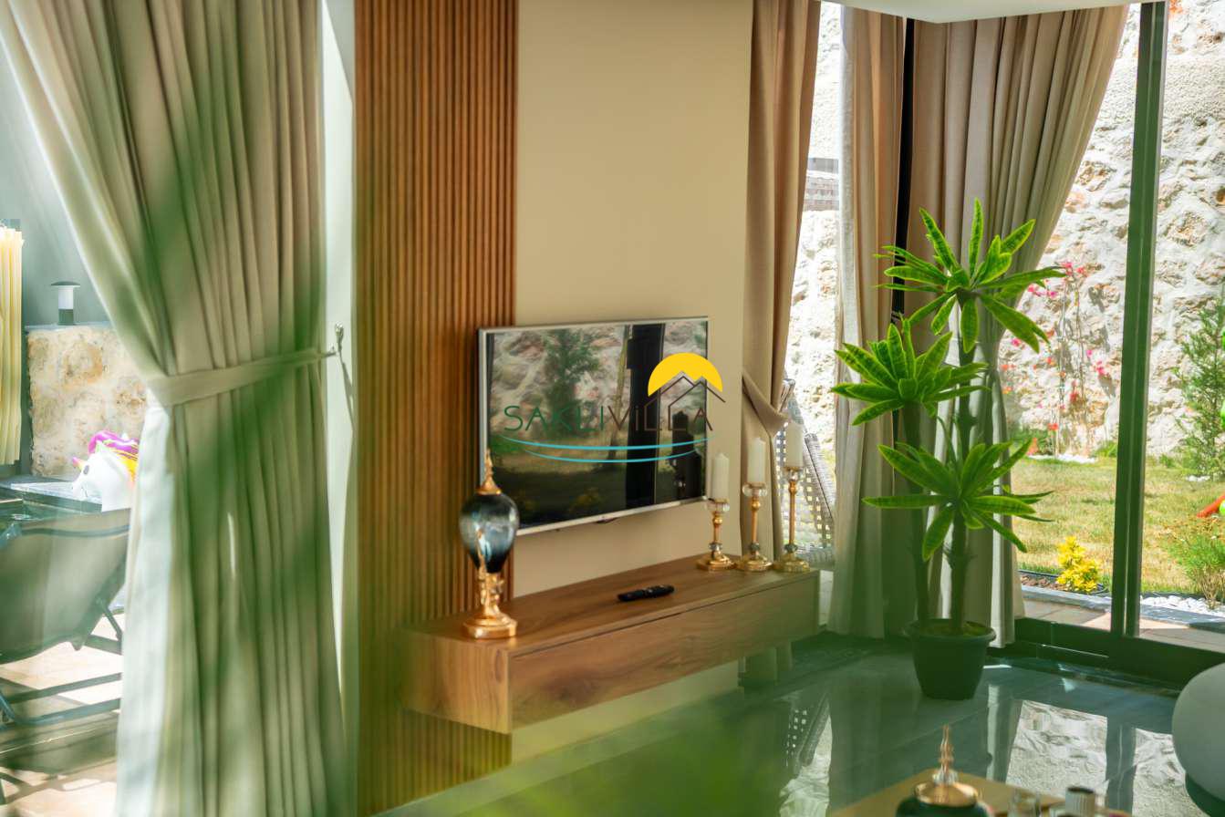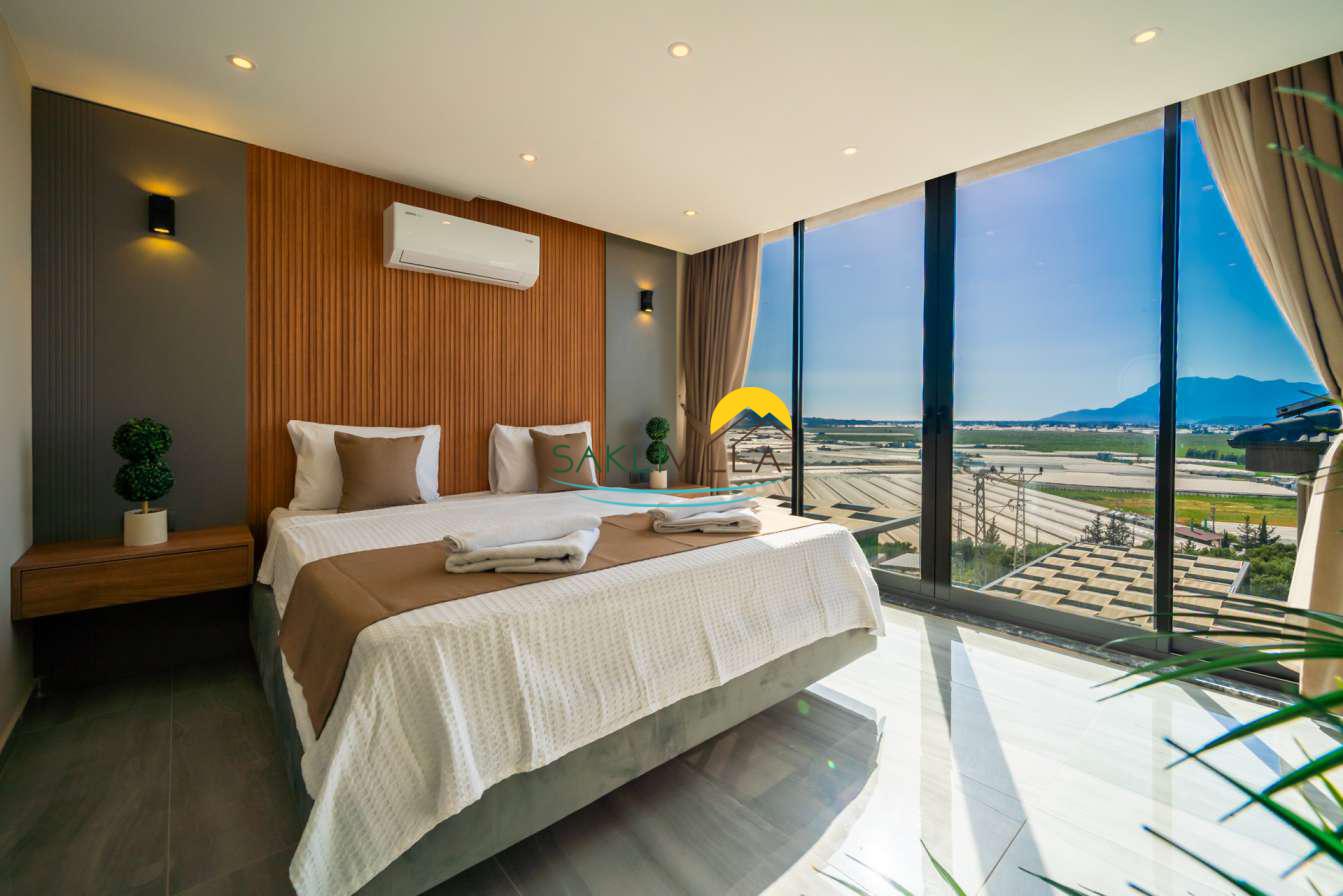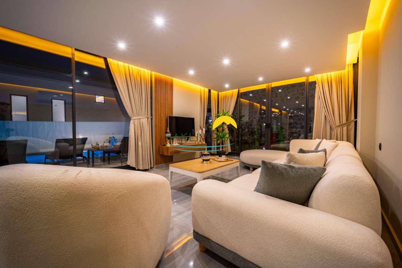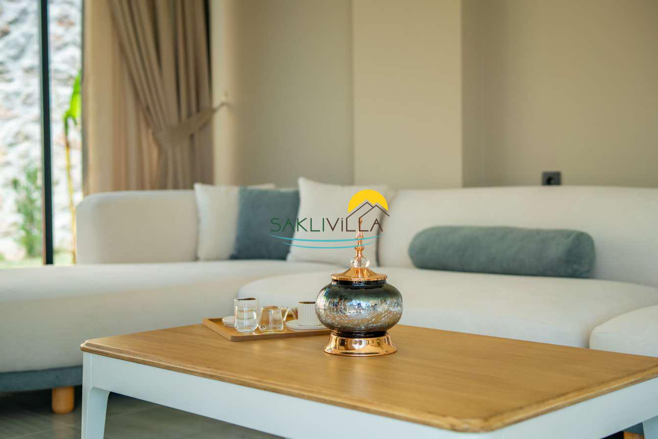 Villa içi mimarisi de göz dolduran özellikler taşımaktadır. Dubleks yapısı ile ferah bir yaşam alanı sunarken, iki yatak odası modern tasarım öğeleriyle döşenmiş ve her türlü konfora uygun olacak şekilde donatılmıştır. Yatak odalarındaki geniş ve rahat yataklar, kaliteli uyku deneyimi sağlamakta ve tatil süresince konukların yenilenmesini mümkün kılmaktadır. Salon ve oturma alanları ise, açık plan yerleşimi sayesinde sosyal etkileşimler ve dinlenme ihtiyacına optimal şekilde cevap vermektedir. Ayrıca, modern mutfak imkanı da konukların villa içerisindeyken kendi yemeklerini hazırlayabilmelerine olanak tanımaktadır.