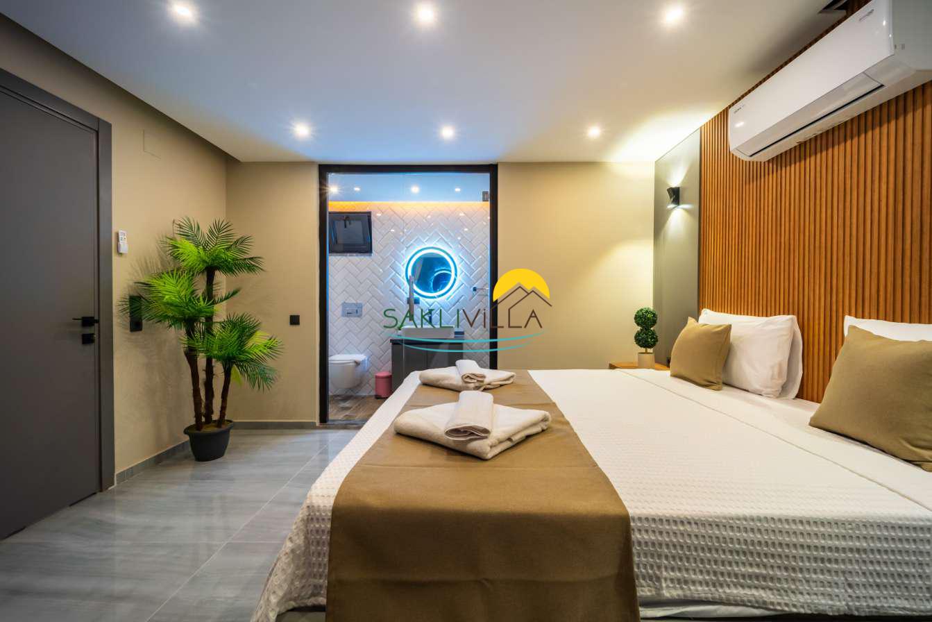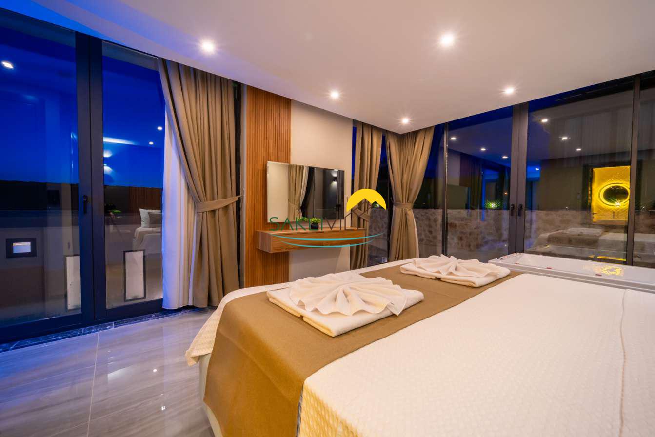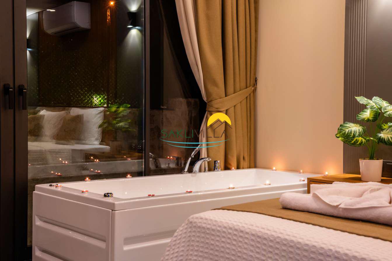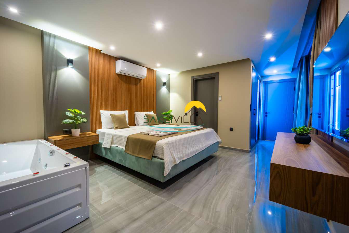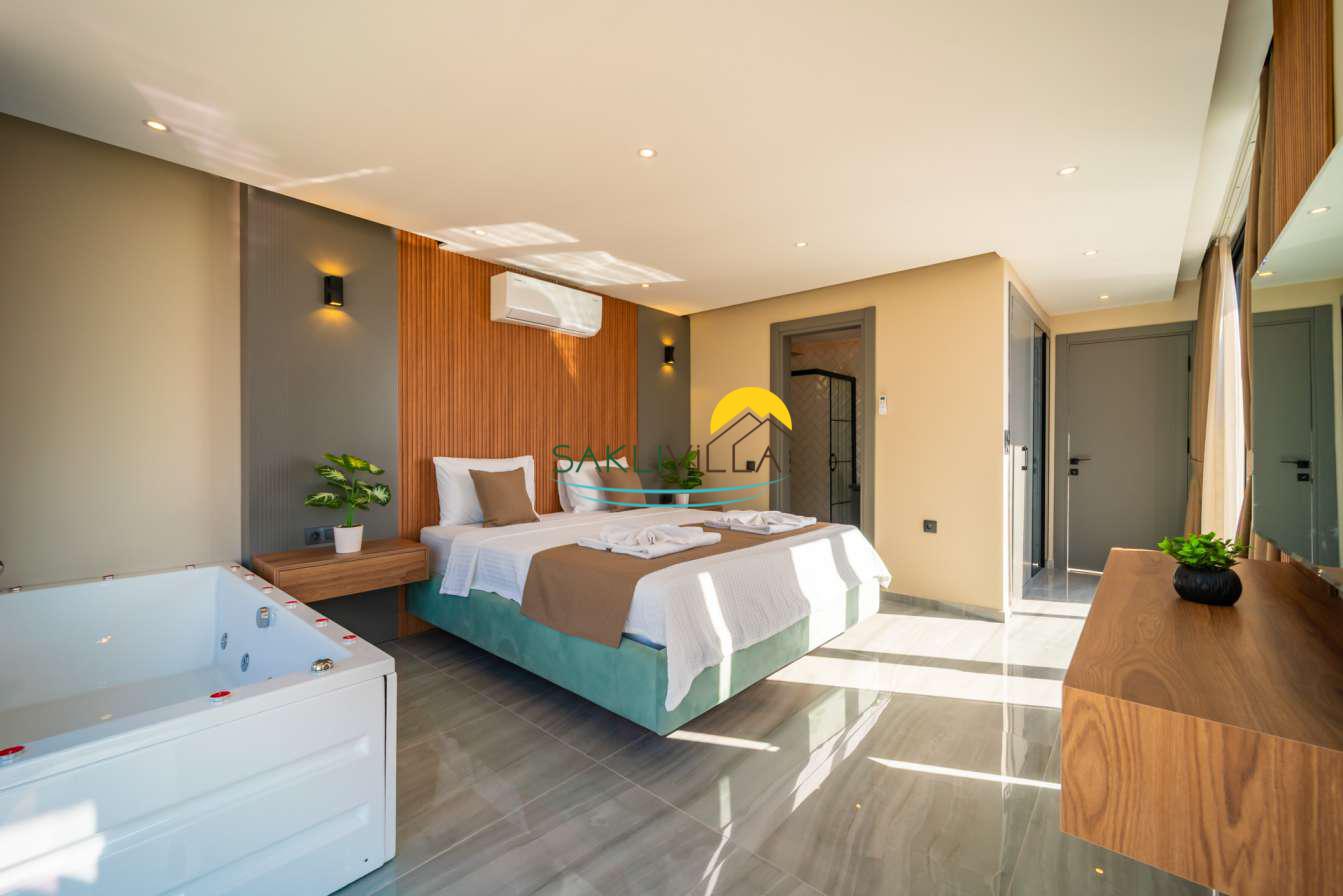 Ayrıca suit yatak odasında yer alan jakuzi, misafirlere günün yorgunluğunu atabilecekleri lüks ve rahatlatıcı bir alan sunarken, aynı zamanda romantik ve keyifli anlar yaratmaktadır.