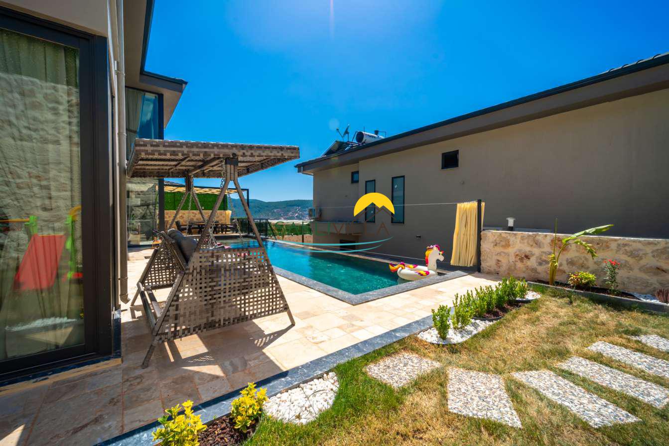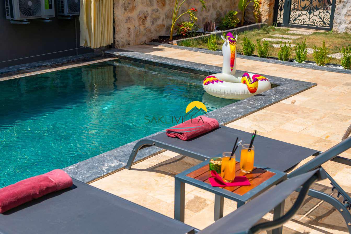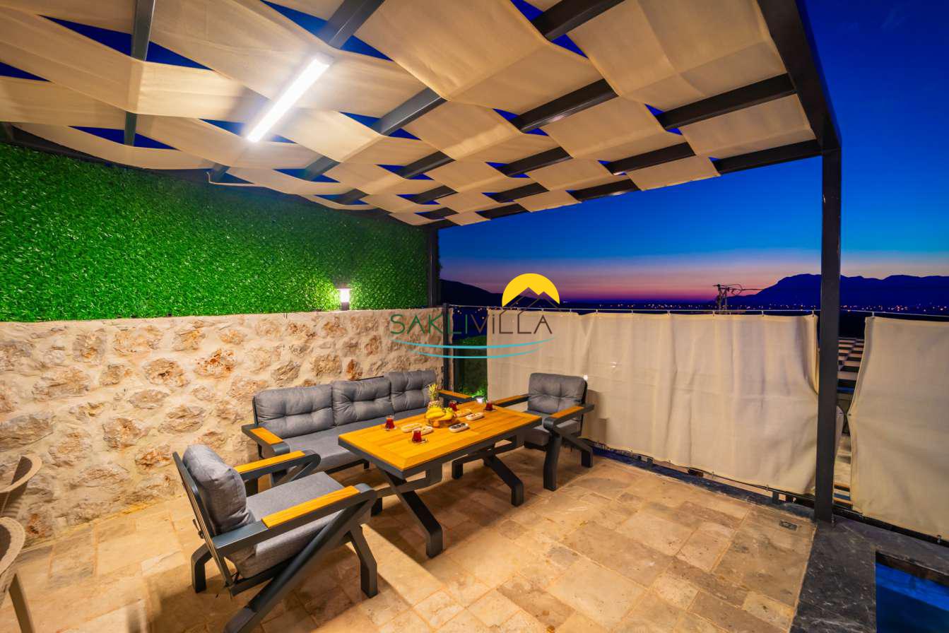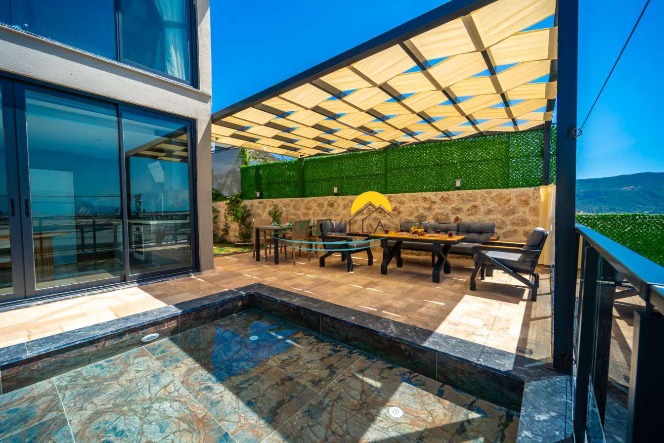 Villa Colosseum Kalkan Yeşilköy’de Bulunan Dubleks Özel Bahçeli ve Havuzlu 2 Yatak Odalı, 4 Kişilik özel Havuzlu, JakuziliLüks Kiralık Bir Villadır