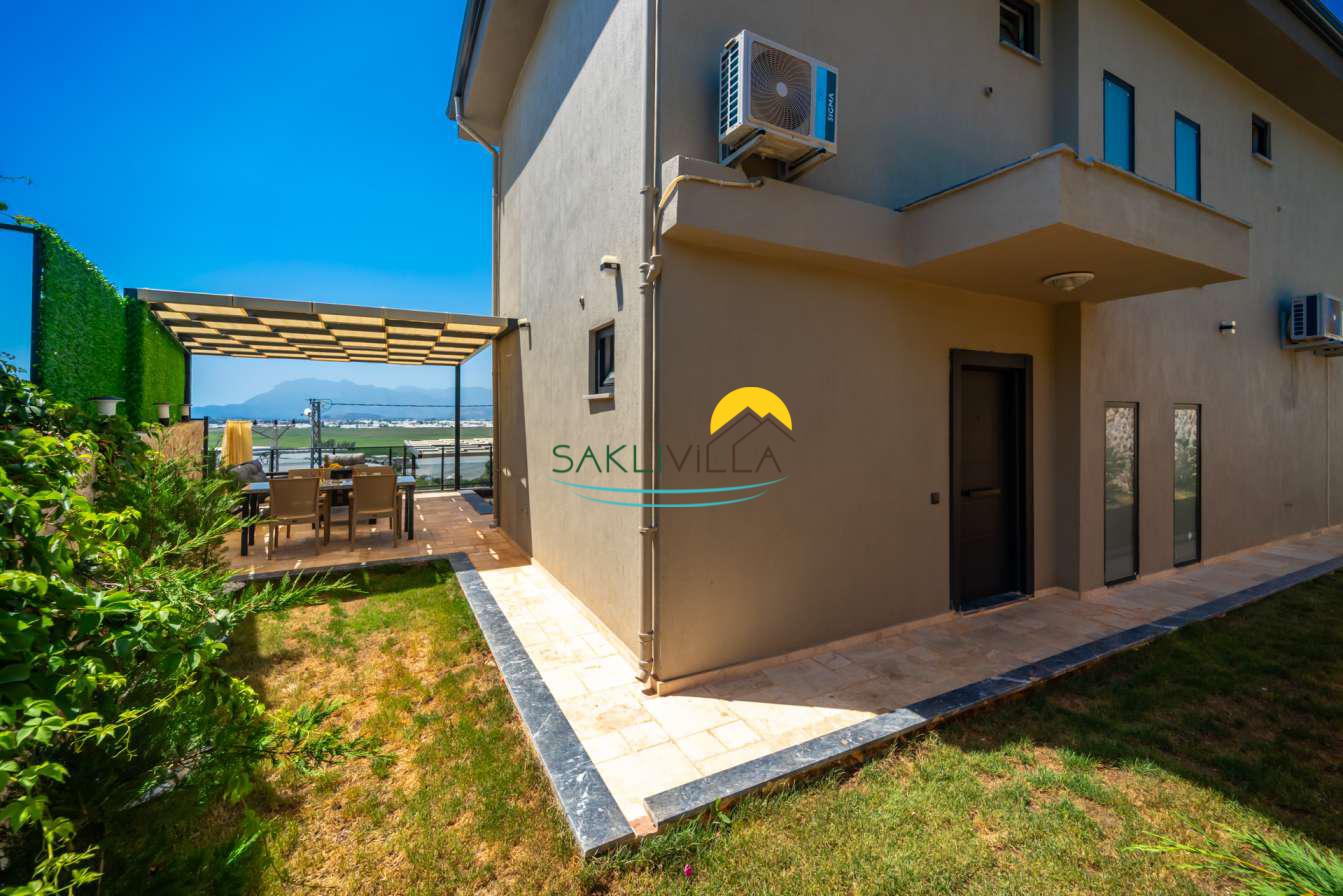 İki yatak odalı, dubleks yapıya sahip olan ve özel bahçesi ile özel geniş havuzu bulunan bu kiralık villamız, dört kişilik konaklama kapasitesiyle aileler ya da küçük arkadaş grupları için ideal bir ortam sağlamaktadır.