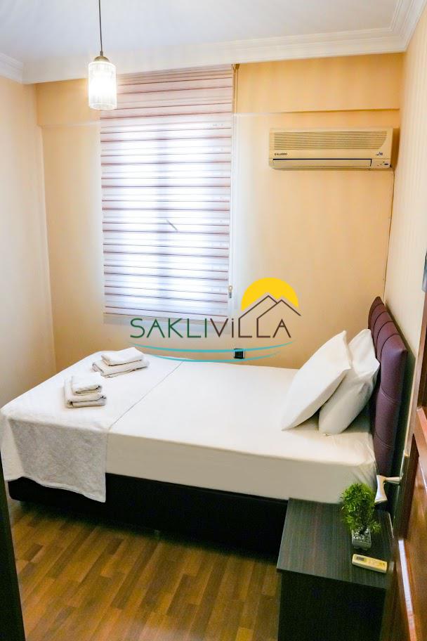 1. Yatak Odası :1 adet Çift kişilik yatak, Klima, Komodin, Elbise Dolabı, ortak banyo/WC