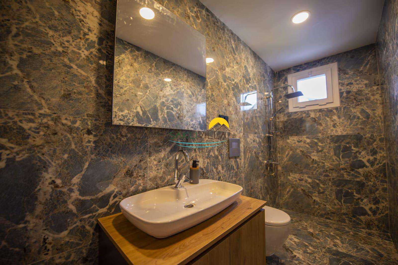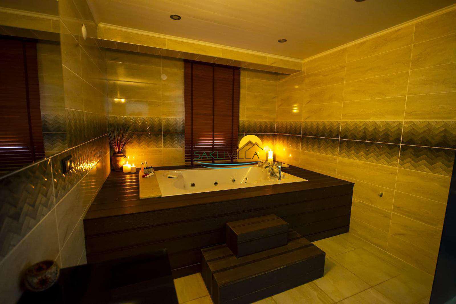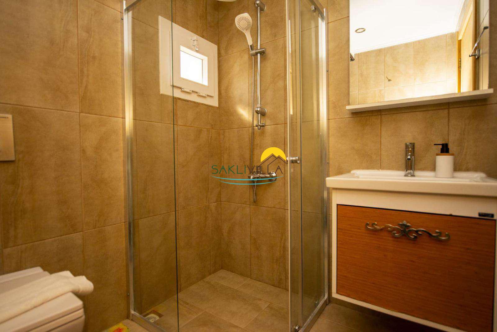 Villanın dört adet banyo ve tuvaleti, özellikle kalabalık gruplar için büyük bir kolaylık sağlar. Ebeveyn banyosu, mahremiyet ve konforu bir arada sunarken, diğer banyolar da misafirlerin ihtiyaçlarını karşılamak üzere tasarlanmıştır. Sekiz kişinin rahatlıkla konaklayabileceği villa, geniş ve ferah yaşam alanları sunar.