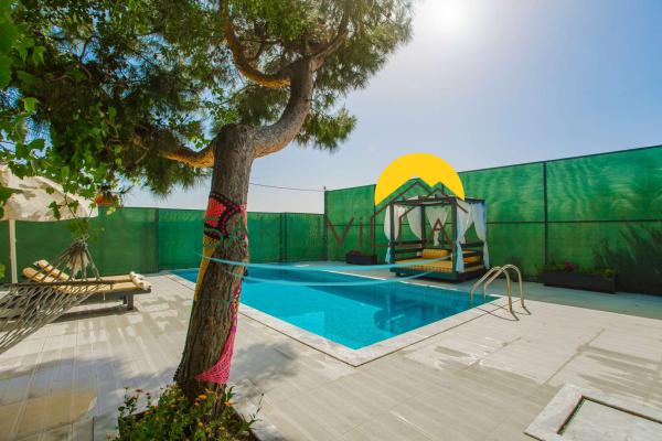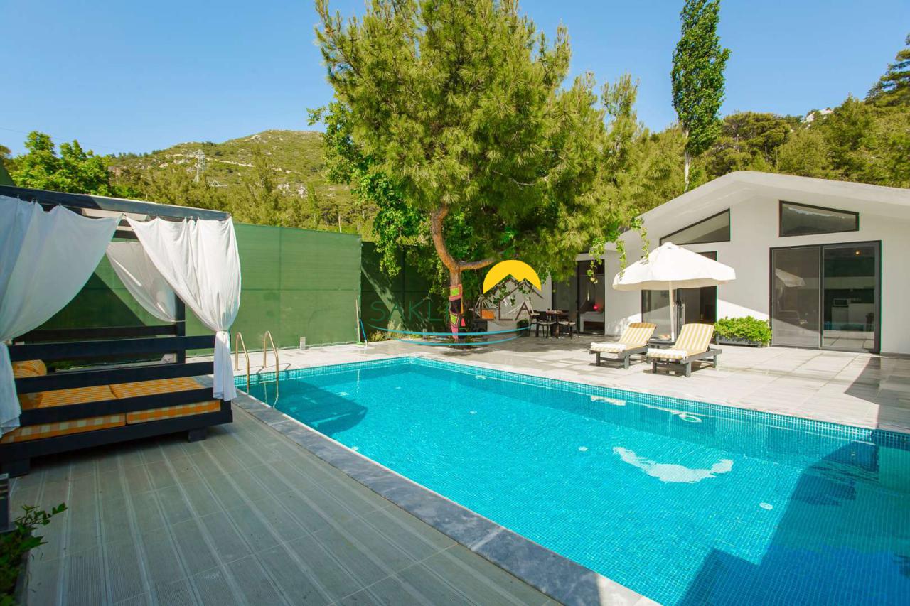 Havuz ve Bahçe: Korunaklı villamızın özel yüzme havuzu, havuz terasında sizlere ait bir adet hamak ve barbekü bulunmaktadır.
