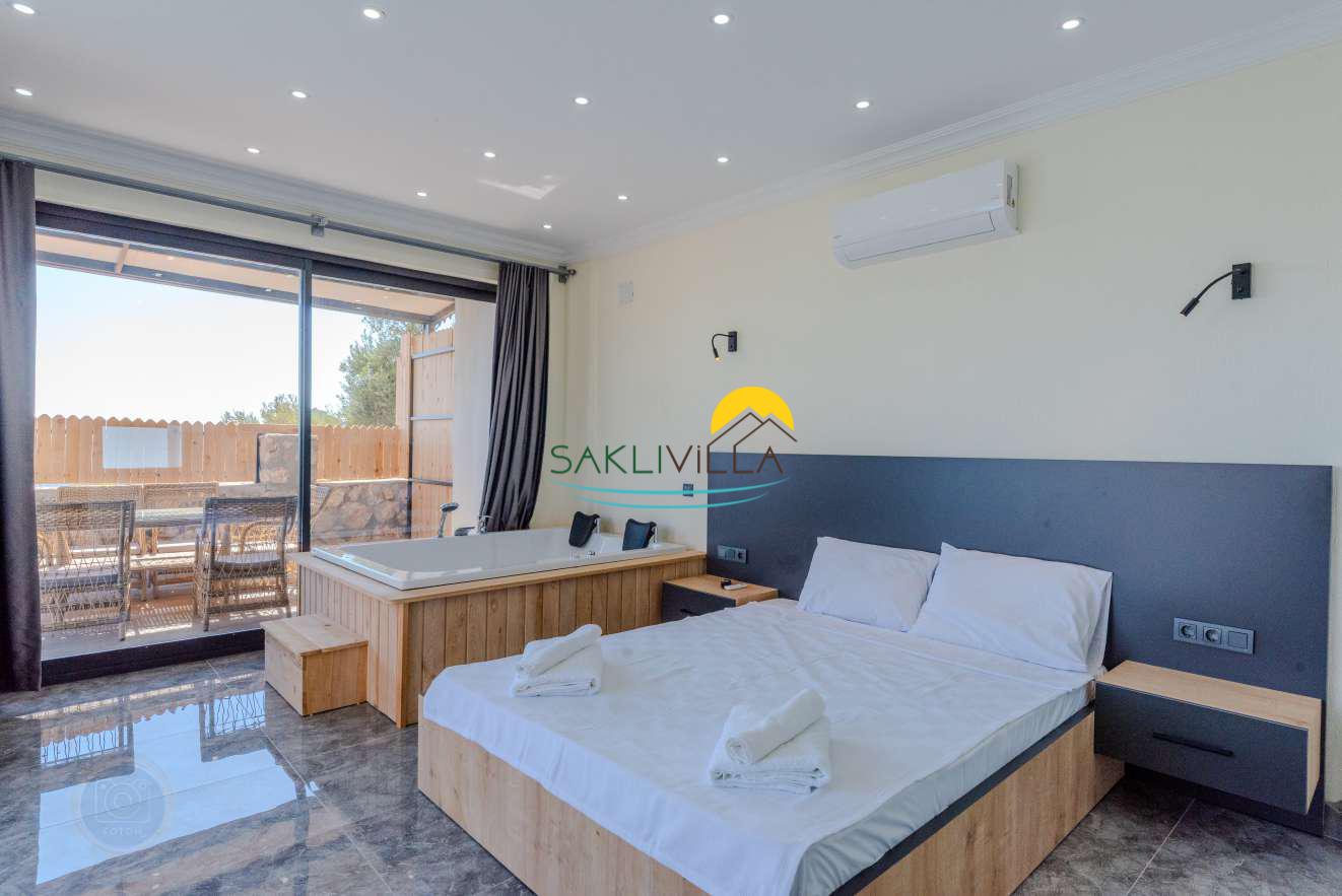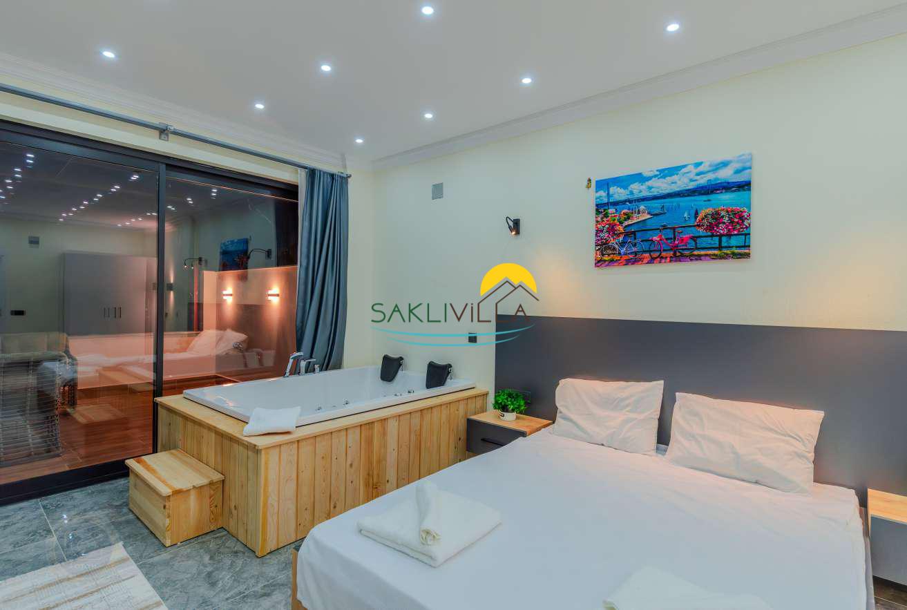 Kiralık Villa Desila, öncelikle sunduğu olanaklarla dikkat çekmektedir. İki konforlu yatak odasına sahip olan villa, dört kişiye kadar konaklama kapasitesiyle özellikle küçük aileler veya arkadaş grupları için uygundur. Kiralık villa, misafirlerine özel bir yaşam alanı sunarken, aynı zamanda mahremiyet gibi önemli unsurları da sağlamaktadır. Korunaklı yapısı sayesinde, villa içerisindeki yaşam alanları dışarıdan gözle görülmemekte ve misafirlerin rahatlığı maksimum seviyede tutulmaktadır. Bu özellik, tatilin huzurlu ve stressiz geçmesini isteyenler için büyük bir avantajdır.Korunaklı havuz ve jakuzi, Villa Desila’in en önemli öne çıkan özellikleri arasındadır.