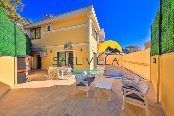 Bahçesi ve havuz terası yabancı gözlerden uzak, muhafazakar bir villadır.