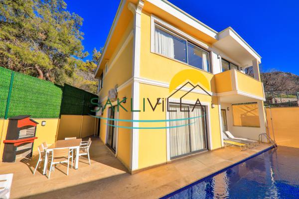 Muhafazakar villalar ve deniz manzaralı villalar kategorisinde yer alan villamız, havuzu korunaklı ve bahçesi dışarıdan görünmeyen villamız mahremiyete önem veren ailelerimiz için huzur dolu bir tatil fırsatı sunuyor.
