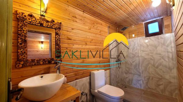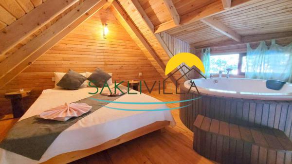 Villa Doğal, konuklarına sunduğu lüks ile dikkat çekmekte ve özellikle romantik bir tatil planlayan çiftler için ideal bir seçim oluşturmaktadır. Villanın yatak odasında yer alan jakuzi, tatil deneyimini daha da özel hale getirmekte ve günün yorgunluğunu çıkaracak bir ortam sunmaktadır. Rahat bir çift kişilik yatak, klima, komodin ve makyaj masası gibi olanaklar, konforlu bir konaklama süreci için her detayı düşünülmüş bir şekildedir.