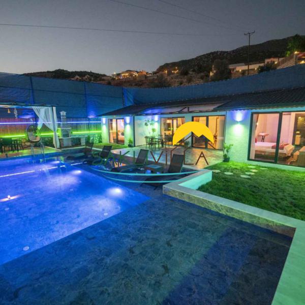 Kalkan, Aklar mevkisinde bulunan muhteşem doğa ve deniz manzarasına sahip konforlu özellikli ve 2 yatak odası ile 4 kişi kapasiteli çoğunlukla balayı çiftlerinin ve muhafazakar ailelerin tercih ettiği villalarımızdandır.