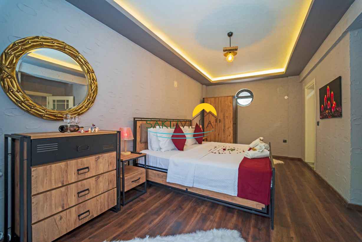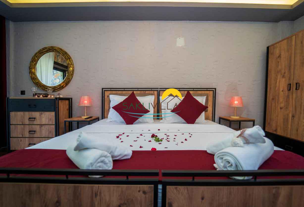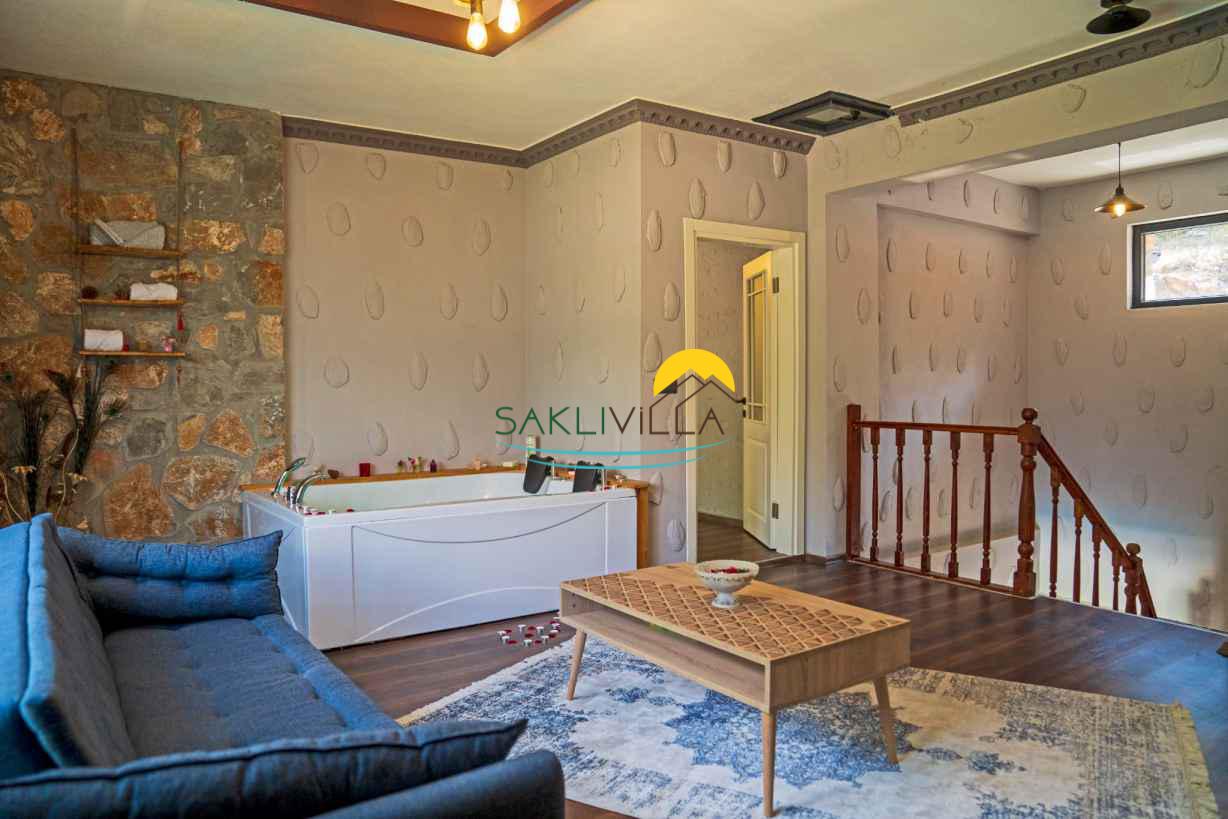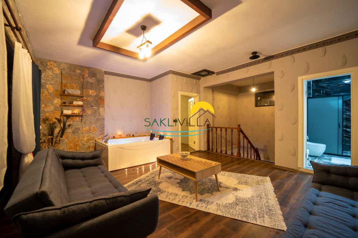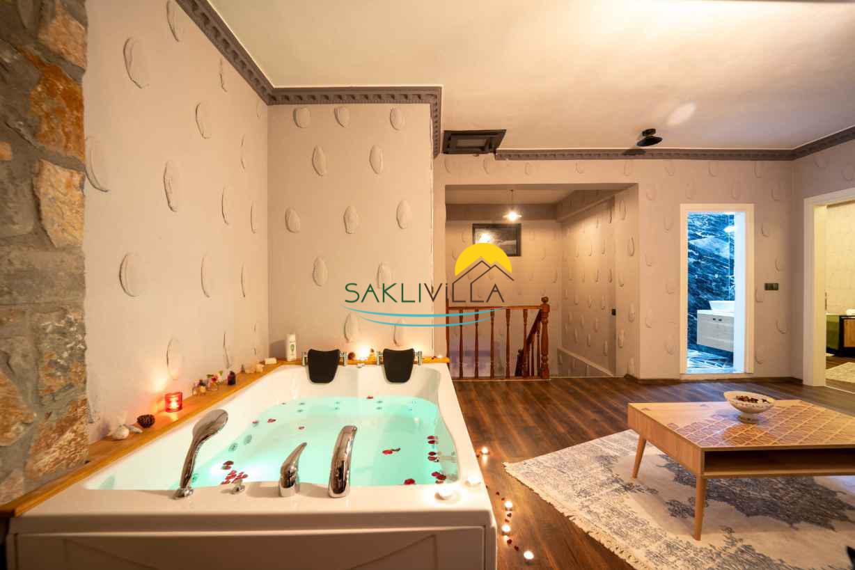 Korunaklı havuzu mevcuttur ve muhafazakar bir yapıdadır. Villamızda 2 yatak odası 2 salon ve 1 jakuzi bulunmaktadır. Doğa içerisinde sessiz sakin bir tatil geçirmek isteyen balayı çiftleri veya çekirdek aileler için uygun bir tatil villası seçeneğidir.