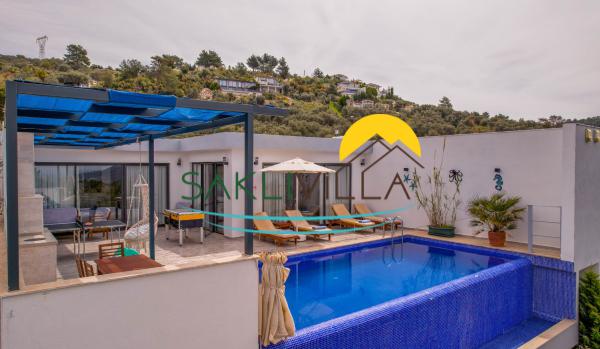 Kalkan Üzümlü'de yer alan Villa Esra Üzümlükorunaklı havuzlu, jakuzili tatil villa seçeneklerimizdendir.