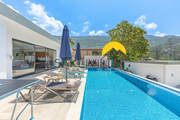 Villanın havuz terası, misafirler için özenle düzenlenmiş bir alan sunar. Burada, güneşlenmek için şezlonglar ve eğlence seçenekleri olarak masa tenisi bulunmaktadır. Bu tür olanaklar, tatilinizi daha keyifli hale getirmekle kalmaz, aynı zamanda sevdiklerinizle geçireceğiniz güzel anların da alt yapısını hazırlar. Korunaklı havuz yapısı; gizlilik arayan misafirler için konforlu bir yüzme deneyimi sağlarken, aynı zamanda güvenli bir ortamda vakit geçirmenin huzurunu da yaşatır.