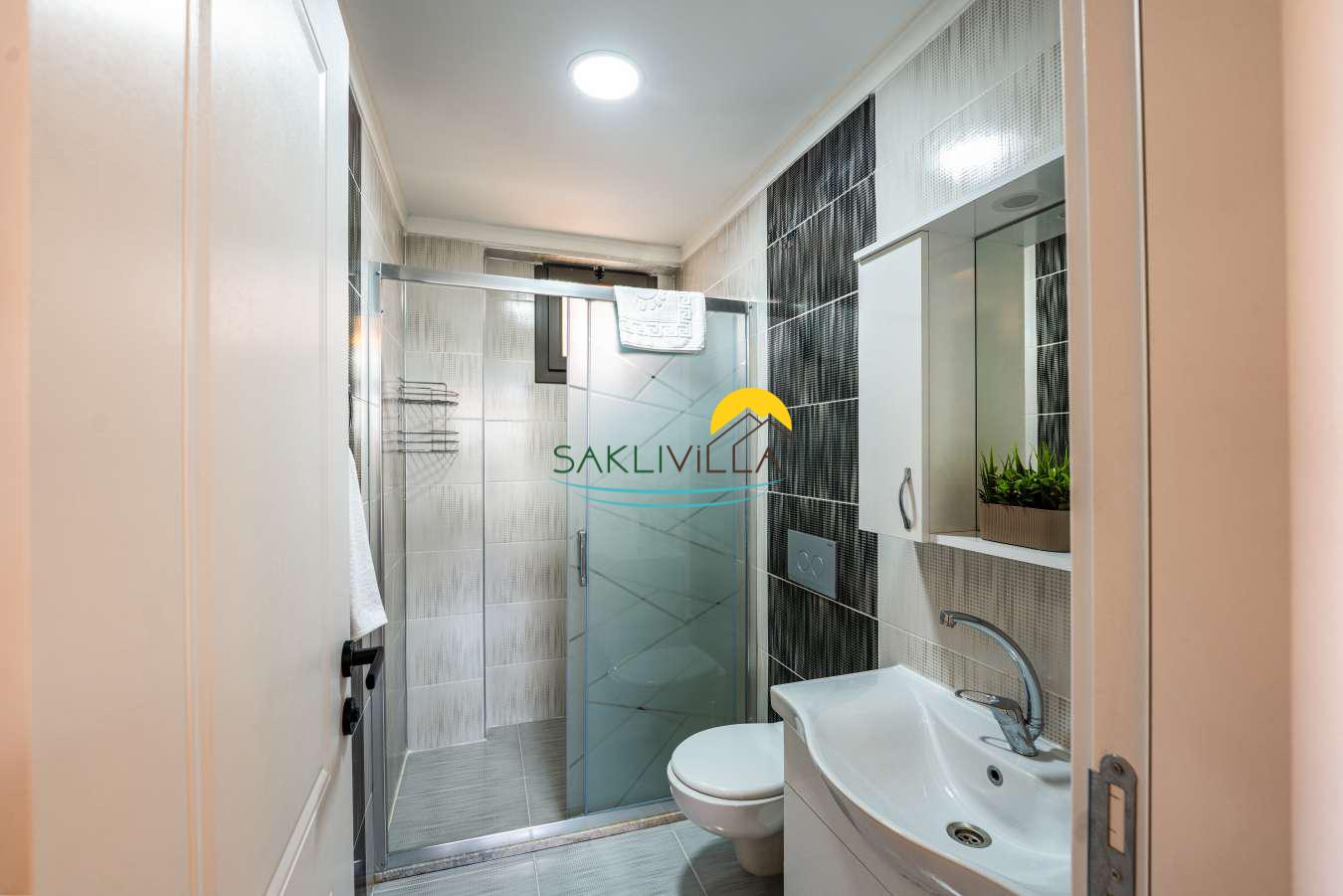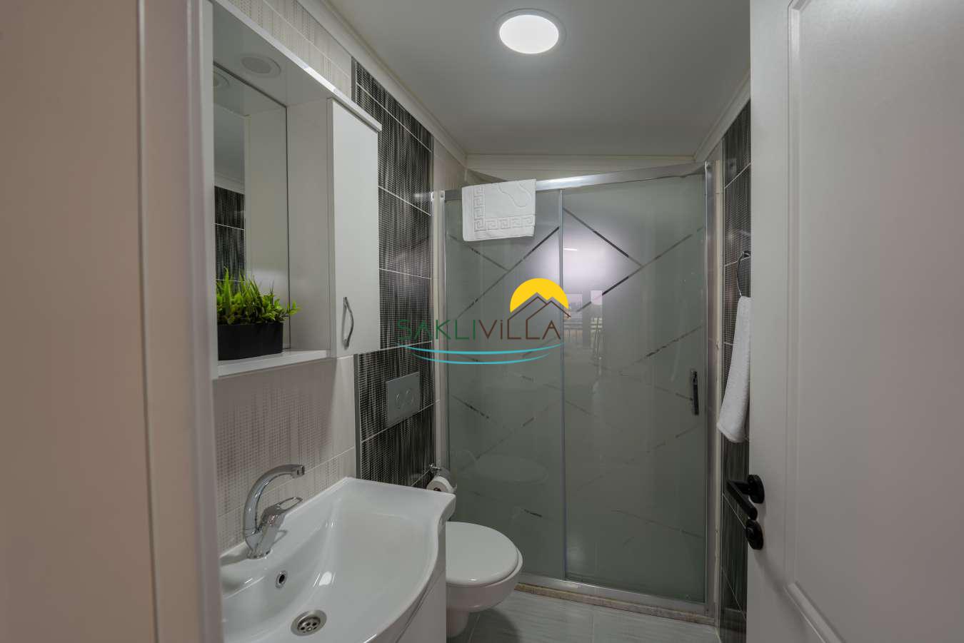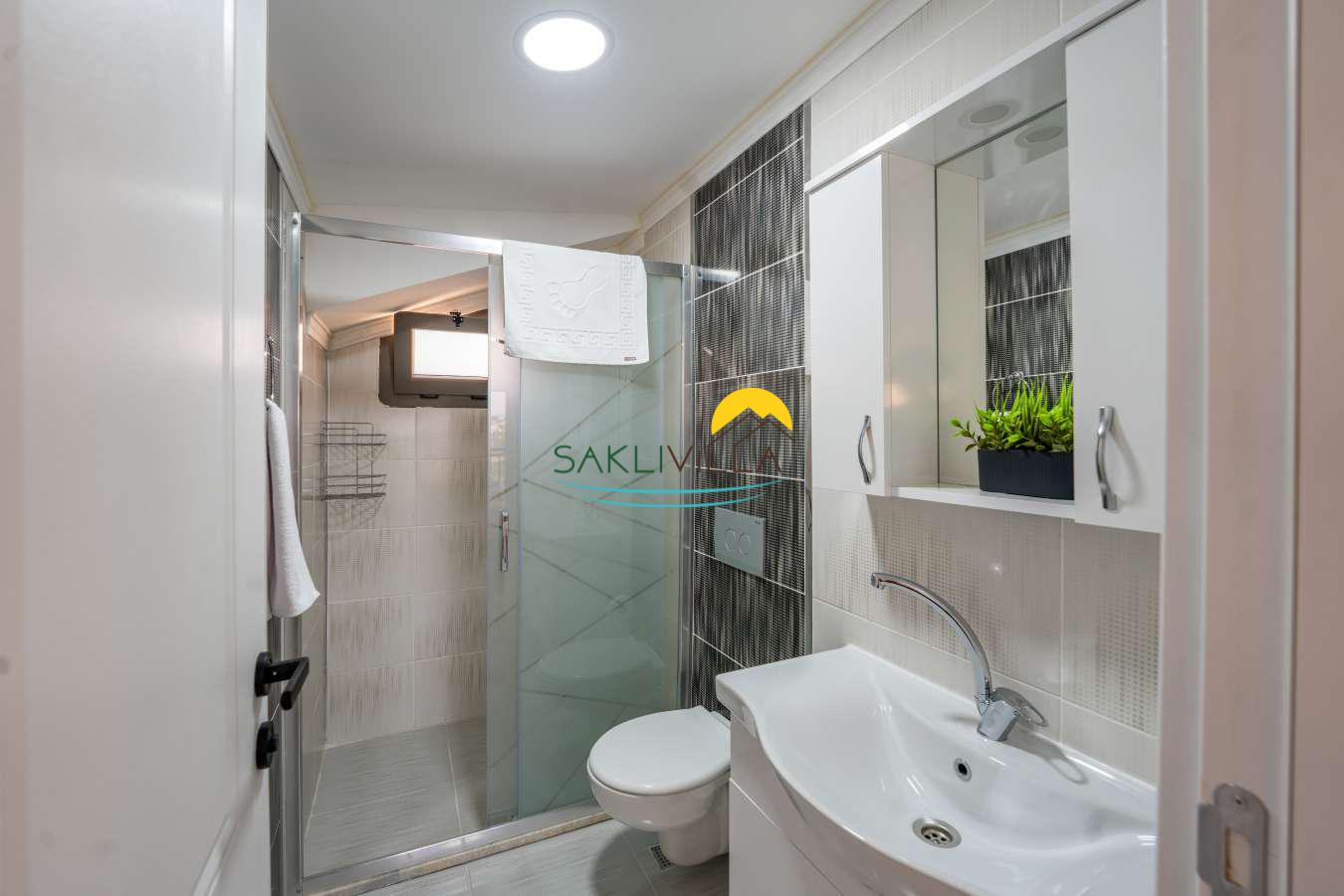 Villa Görgeç’in yatak odalarından iki tanesi, özel banyo ve tuvalet ile donatılmıştır. diğer iki yatak odası için ise koridor üzerinde paylaşımlı banyo ve tuvalet mevcuttur. .
