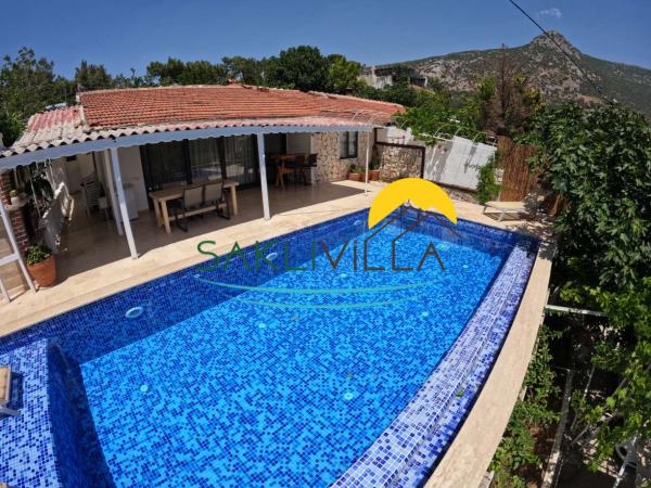 Özellikler: Özel açık yüzme havuzu, güneşlenme alanı, şezlonglar, özel bahçe, özel park yeri ve mangal alanı.